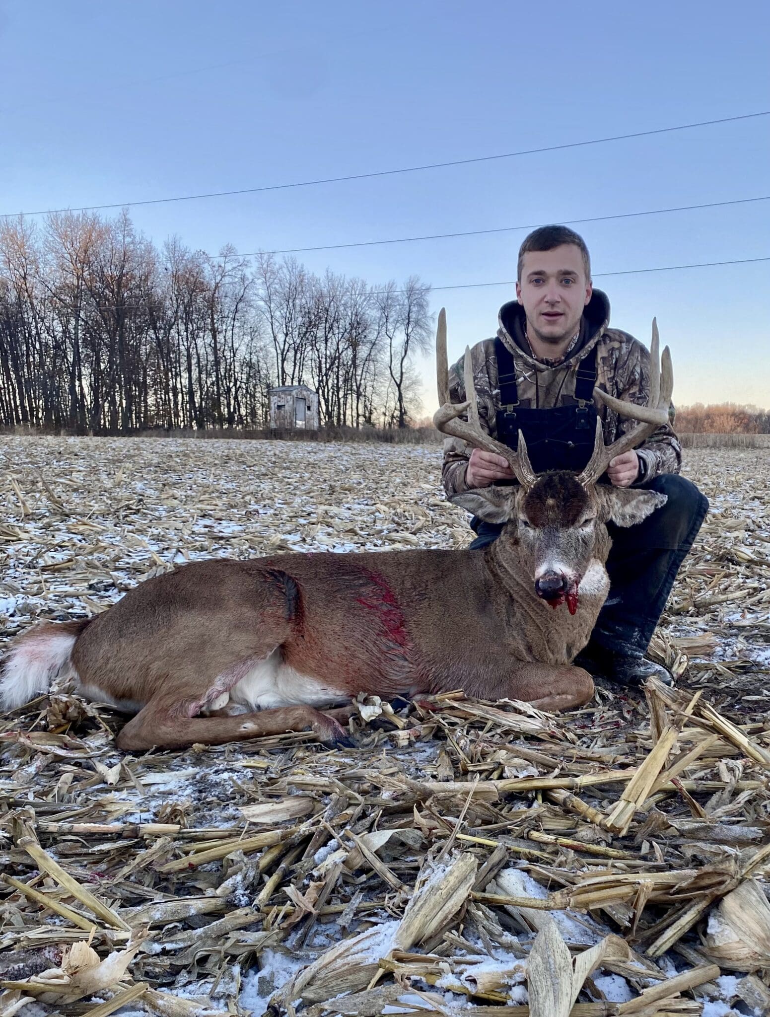 Many encounters with this buck during bow season but never able to get a shot. Watched him for two hours opening day chasing doe but couldn’t get him to stop he was chasing the whole time. Finally able to get the job done tonight. Tons of scars on his neck and even a puncture from fighting, also a hole in his ear that looks to be from a bullet.