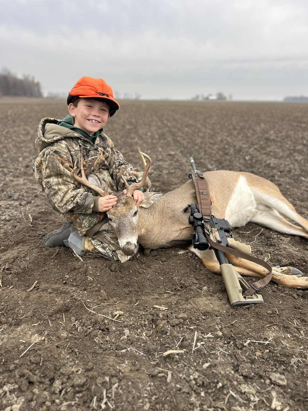 My son Eli decided he wanted to take his first deer this year, so we prepared. He practiced shooting his 350 legend all year. Our house rule is 8 years old with practice and commitment to come to deer camp and take your first shot. We woke up at 4:30, geared up and headed to the woods. Shortly after daybreak we saw several bucks headed our way. He got behind his gun and started to line up his shot. He picked one of the bucks out, confirmed with me he was on “the spot” and I told him to go ahead. He squeezed off a shot at 149 yards and dropped the buck in its tracks. The excitement from both of us was out of this world. He was so proud of himself and I can’t even put into words how proud I was and am. The kid is hooked now!