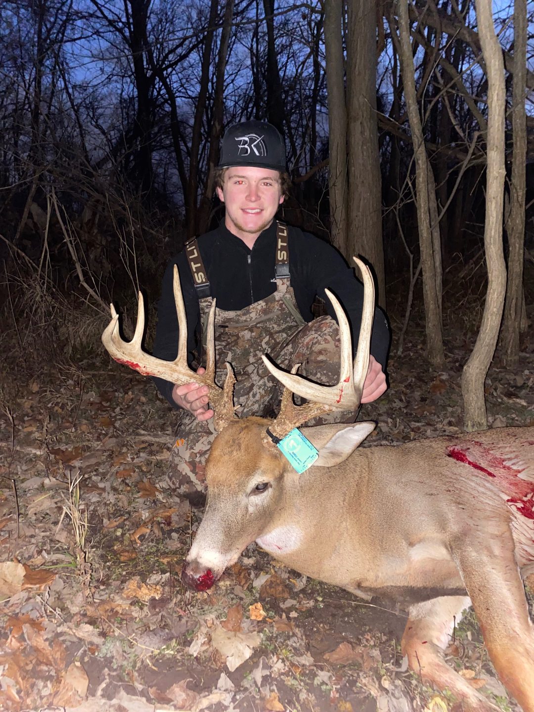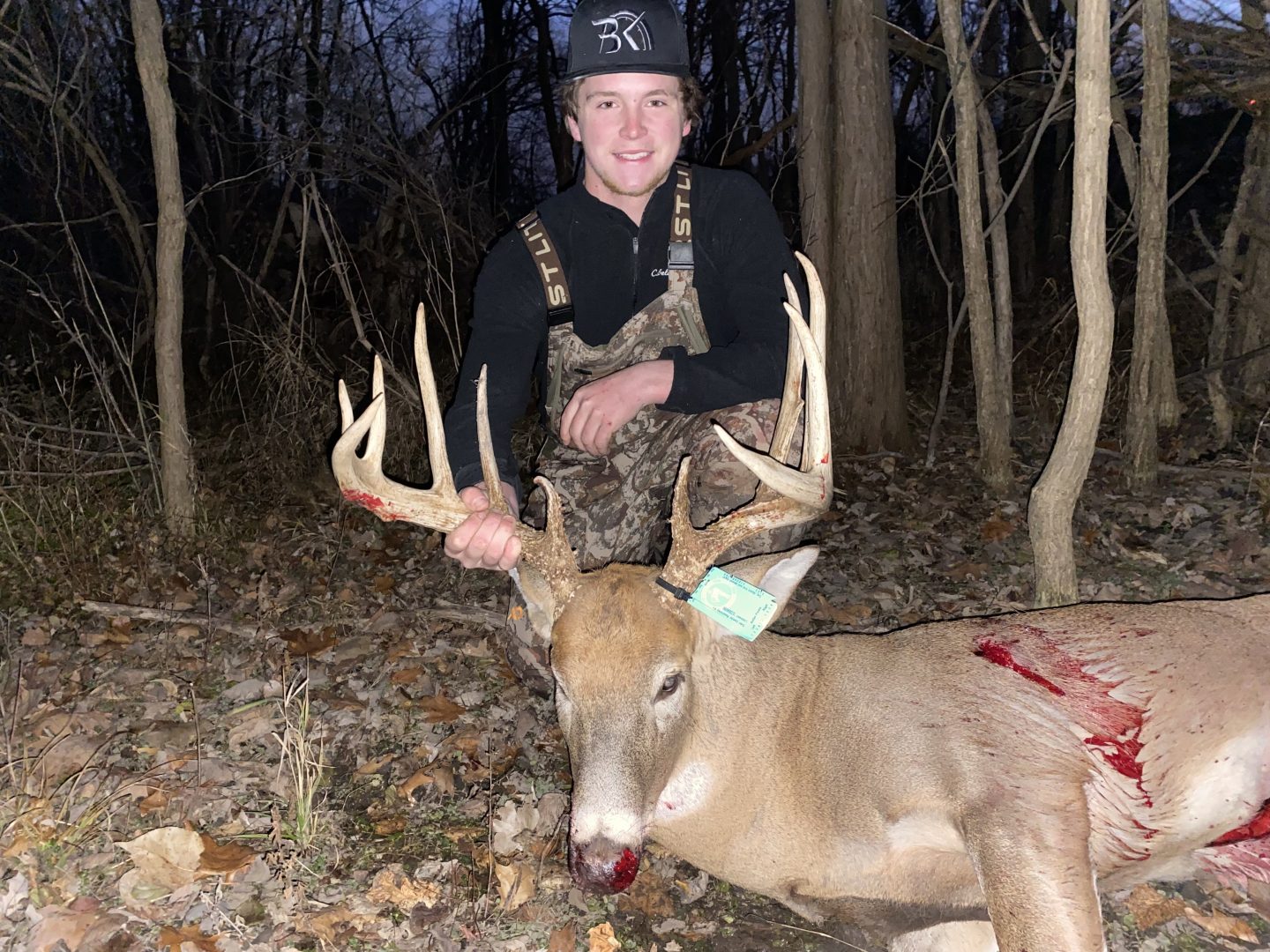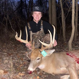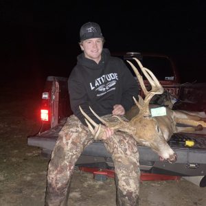 Heard stick break and looked behind me saw him and had to wait until he was right under me to grab my bow. He crosses the crick and took a 15 yard shot. Ran 50 yards and piled up. Biggest buck to date!