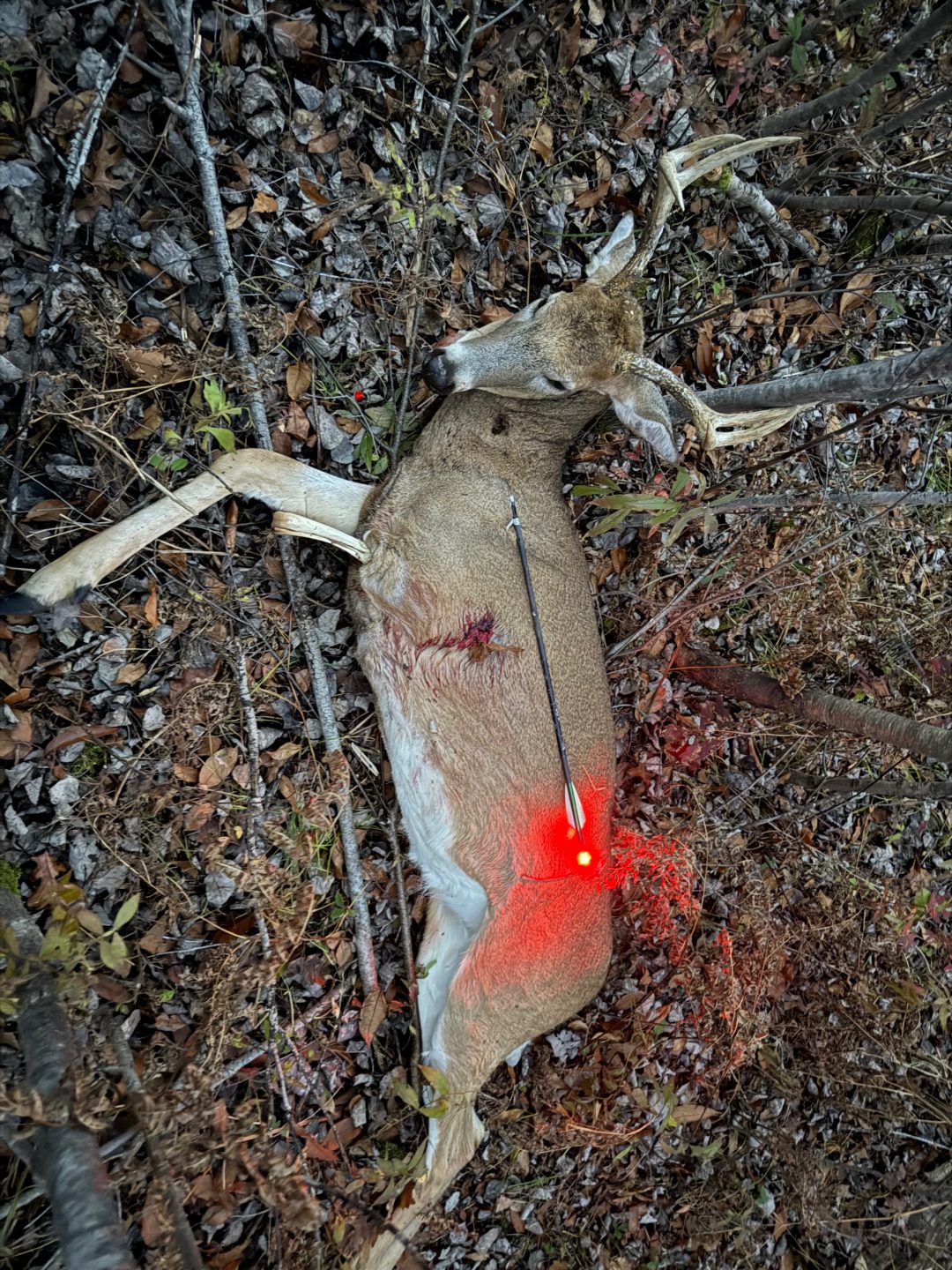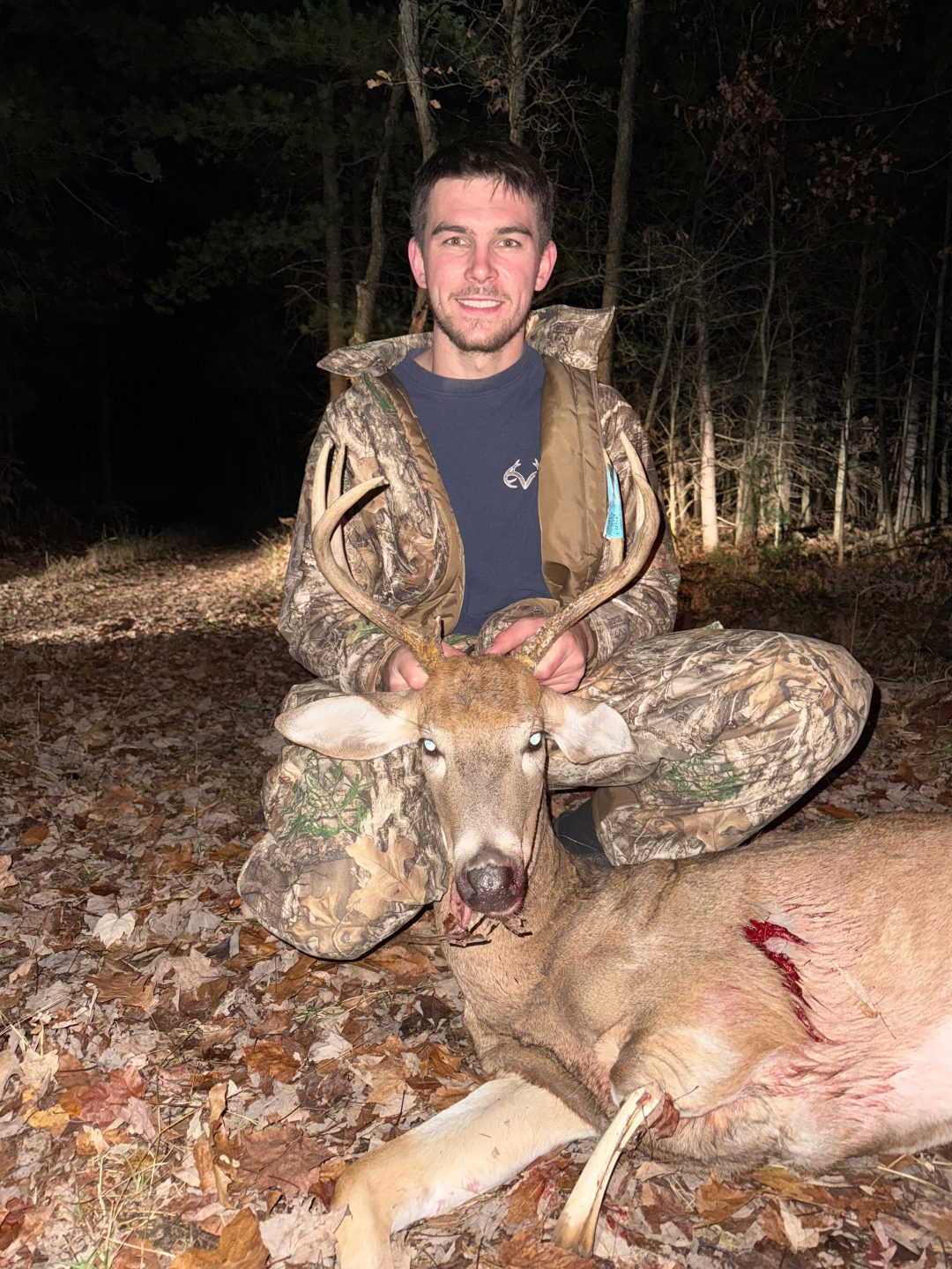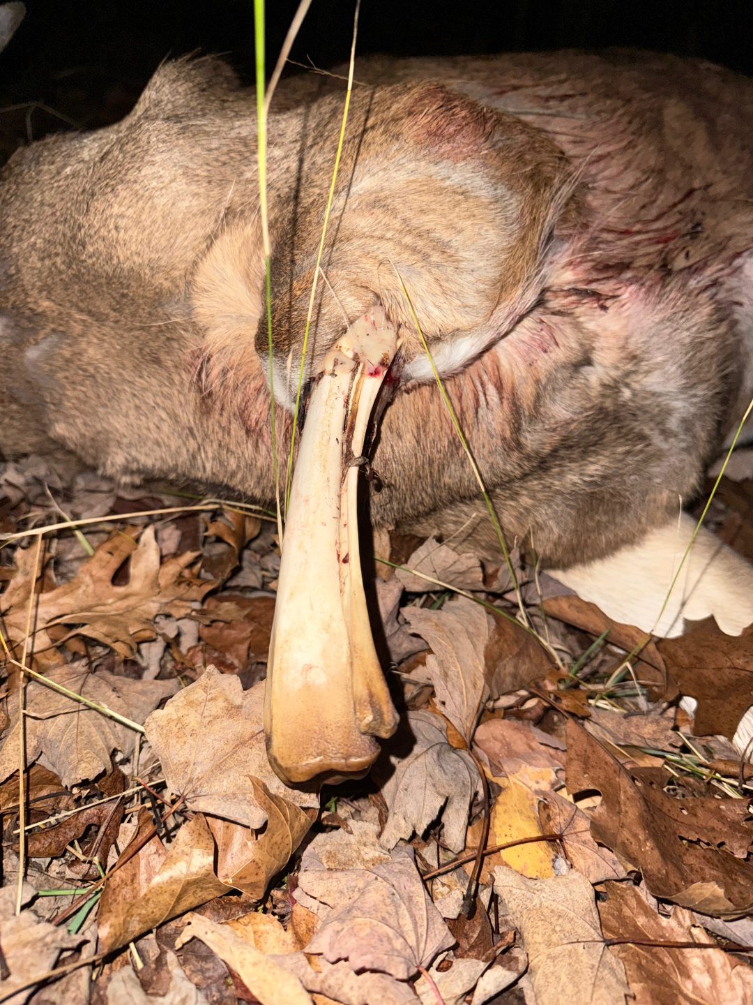 Went out on Devils night in hopes of seeing a bigger buck that I had seen last week had this guy cruise through pushing a doe limping hard and to my surprise, he had three legs he struggling to keep up with her I decided to make the shot at 30 yards as a mercy kill and he piled up after 60 but still beyond blessed and happy for a very nice buck