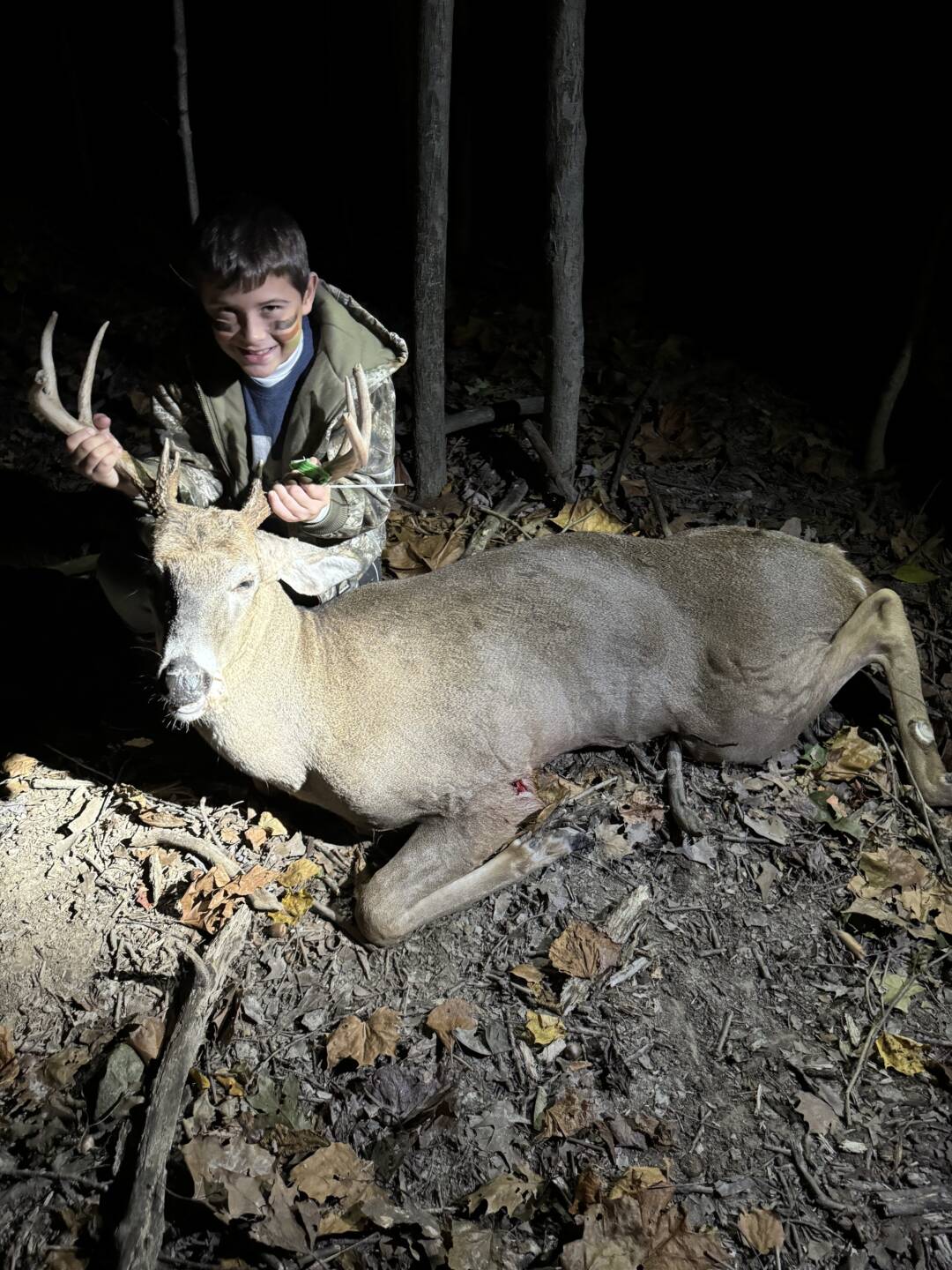 My 9 year old shot his first Buck tonight! Second year hunting. I thought it was a 6 point, but I was pleasantly surprised to discover it was actually a 9 point! 43yards shot with a crossbow. Truly a night we will always remember and treasure. – Berrien County