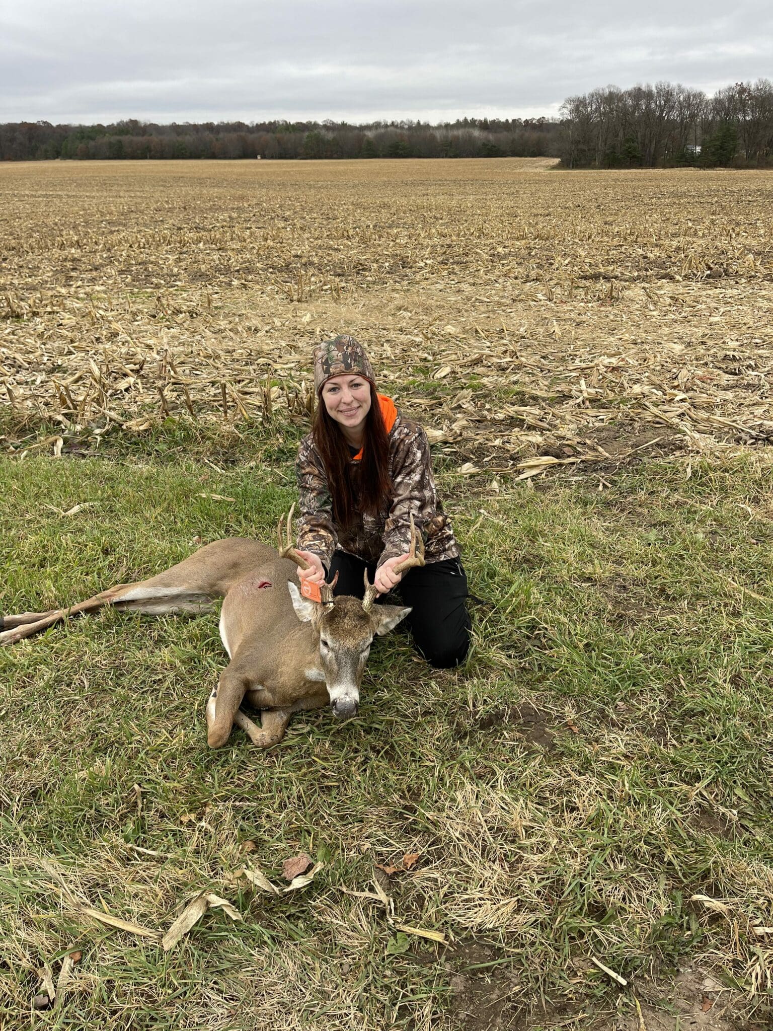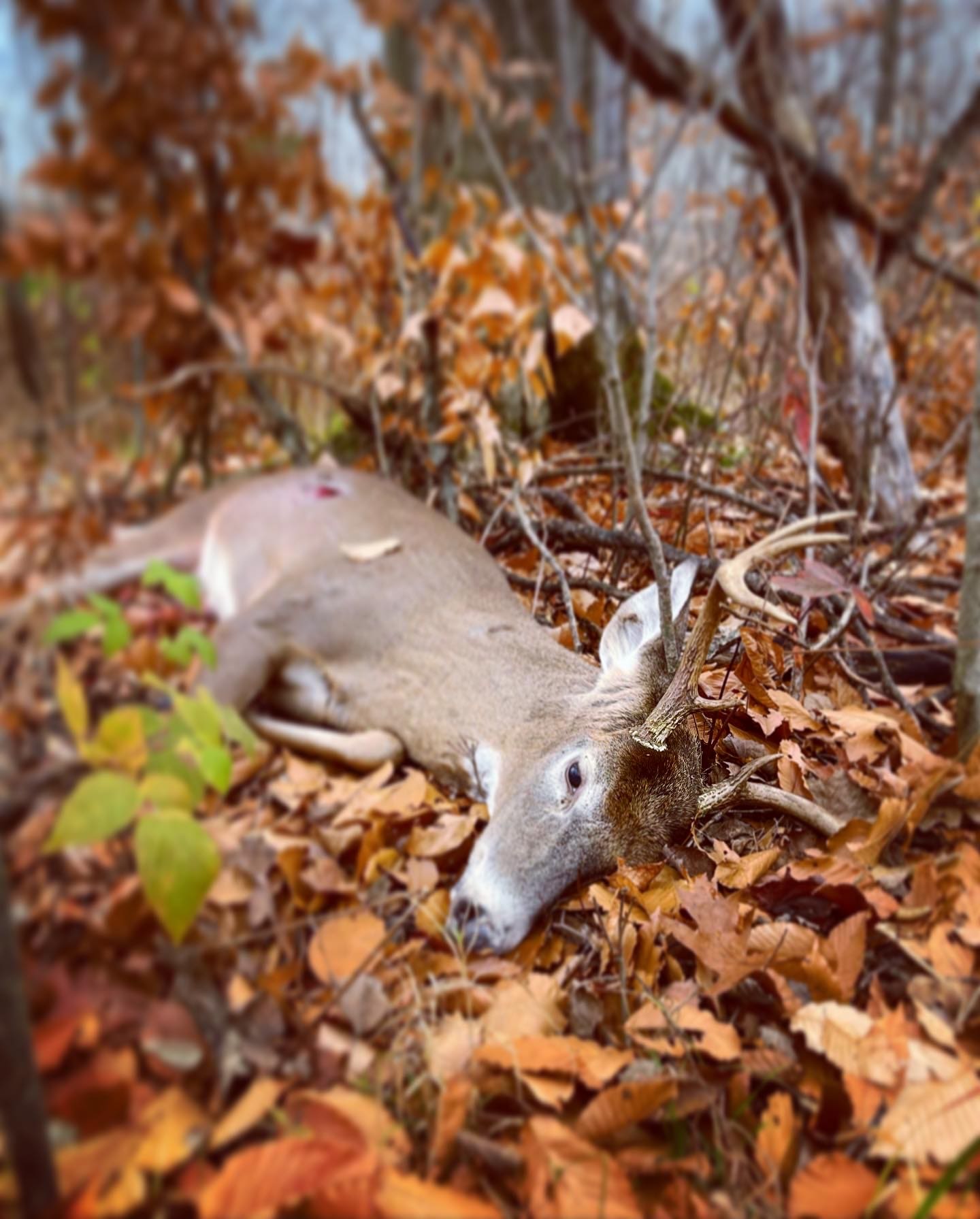 I passed on several smaller bucks knowing this guy and one other were on the property. I was grunting every 15-20 minutes and finally this one came running in. He produced a tough angle but I was able to connect. First archery buck and couldn’t be happier!