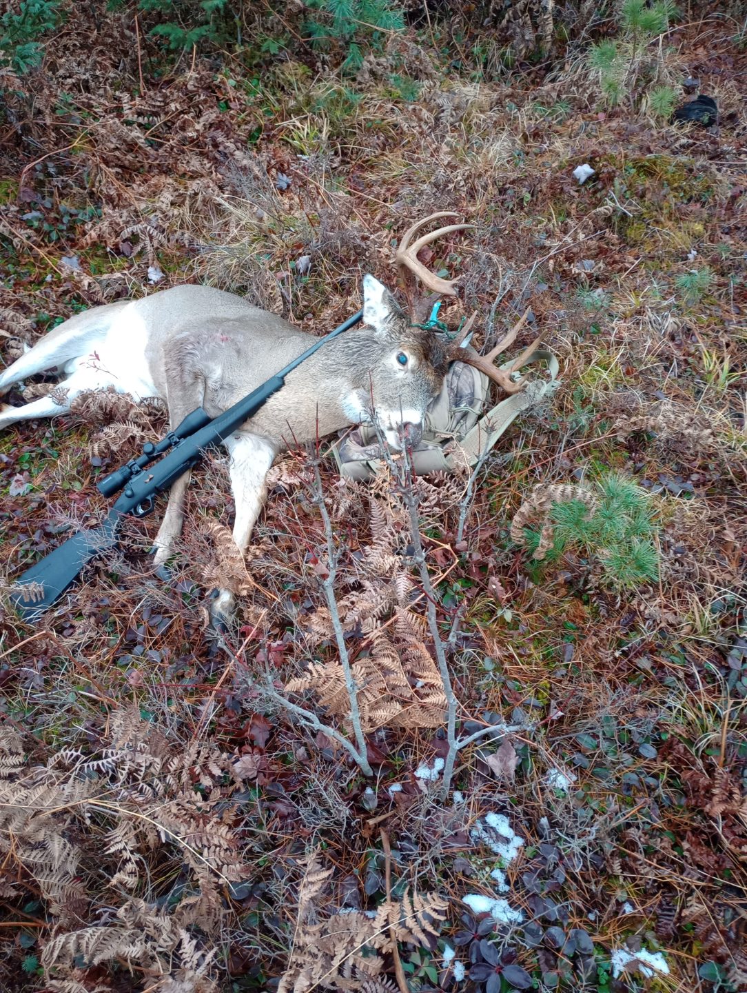 We have had trail cam pictures of this buck for the past month. I was hunting a different area and needed a change of scenery. This 9 point walked in shortly after I used the grunt call a couple of times. Missed the first shot and managed to get a second shot while he was running past and he dropped immediately.