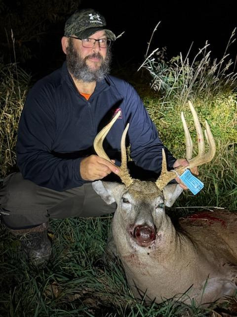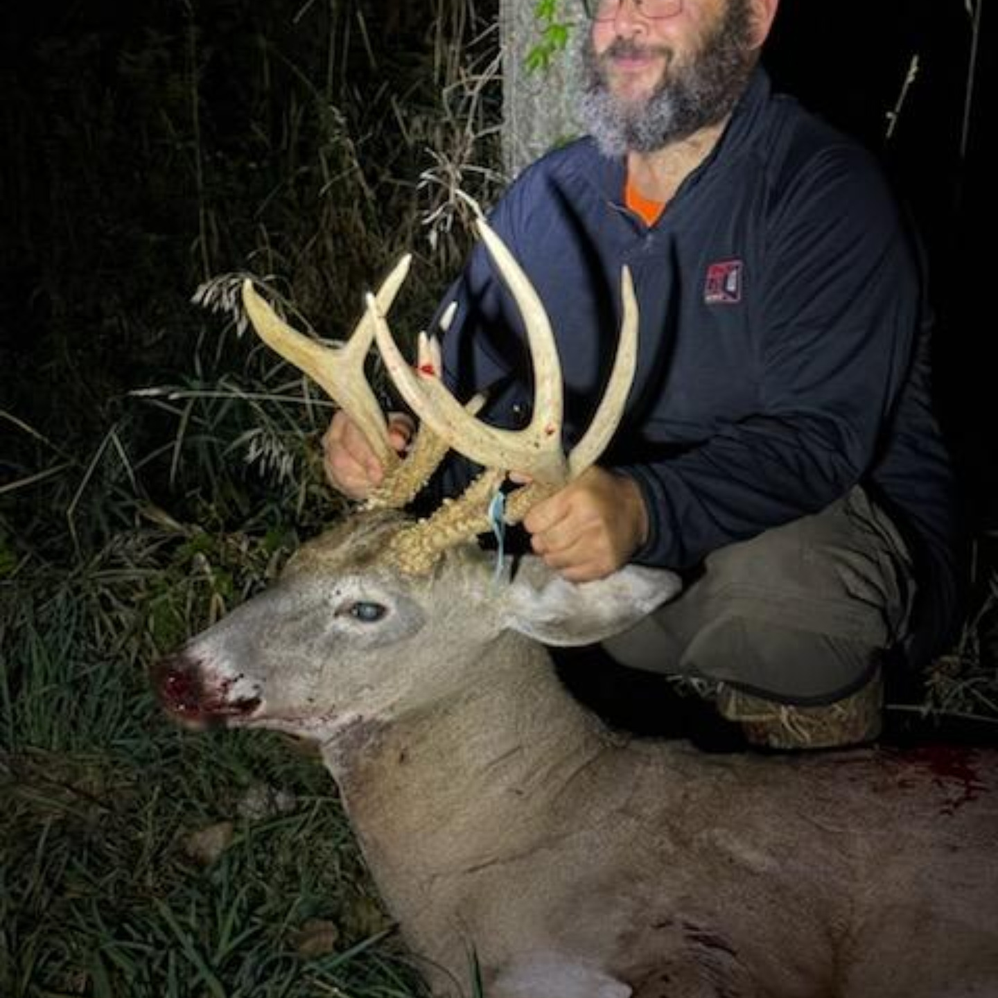 He showed up at 7:12 pm, and finally made a 20yd quartering away shot after some struggles with my bow hitting a branch at full draw.