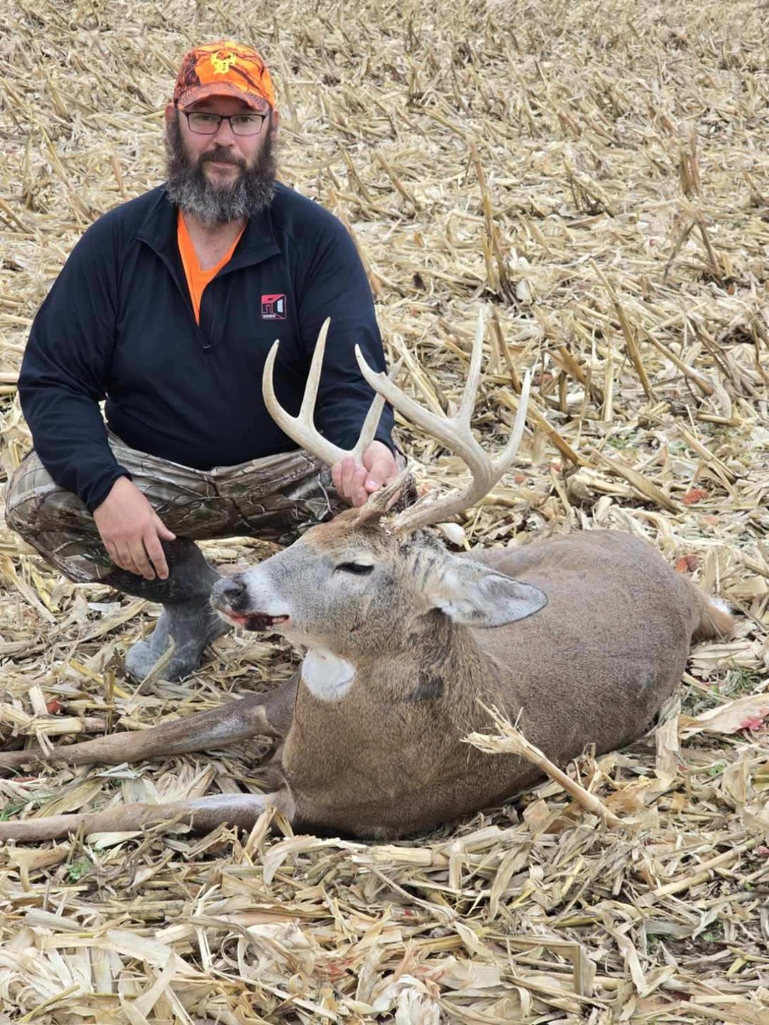 Sitting in my blind opening day overlooking a freshly picked corn field. He appears at roughly 220 yds. I take the shot with my 450 bushmaster. I see him rear up after the shot, so I knew I hit him. He went over a hill and I lost sight of him. At around 11:00 I walk over to where I shot him and there he is laying 20 yds from where he stood when I shot.
