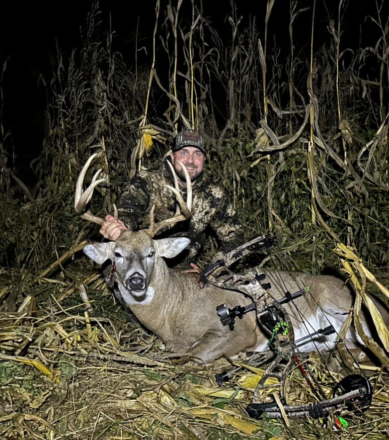 Watched this buck since June. Disappeared for a couple days and showed back up on 10/14 with an arrow sticking out of his face. Saw him multiple times after that but was not able to get within range. Afternoon of 10/20, he stepped out into my corn field and slowly made his way right to me. Was able to get a shot off at 35 yards! “didnt go 20!”.