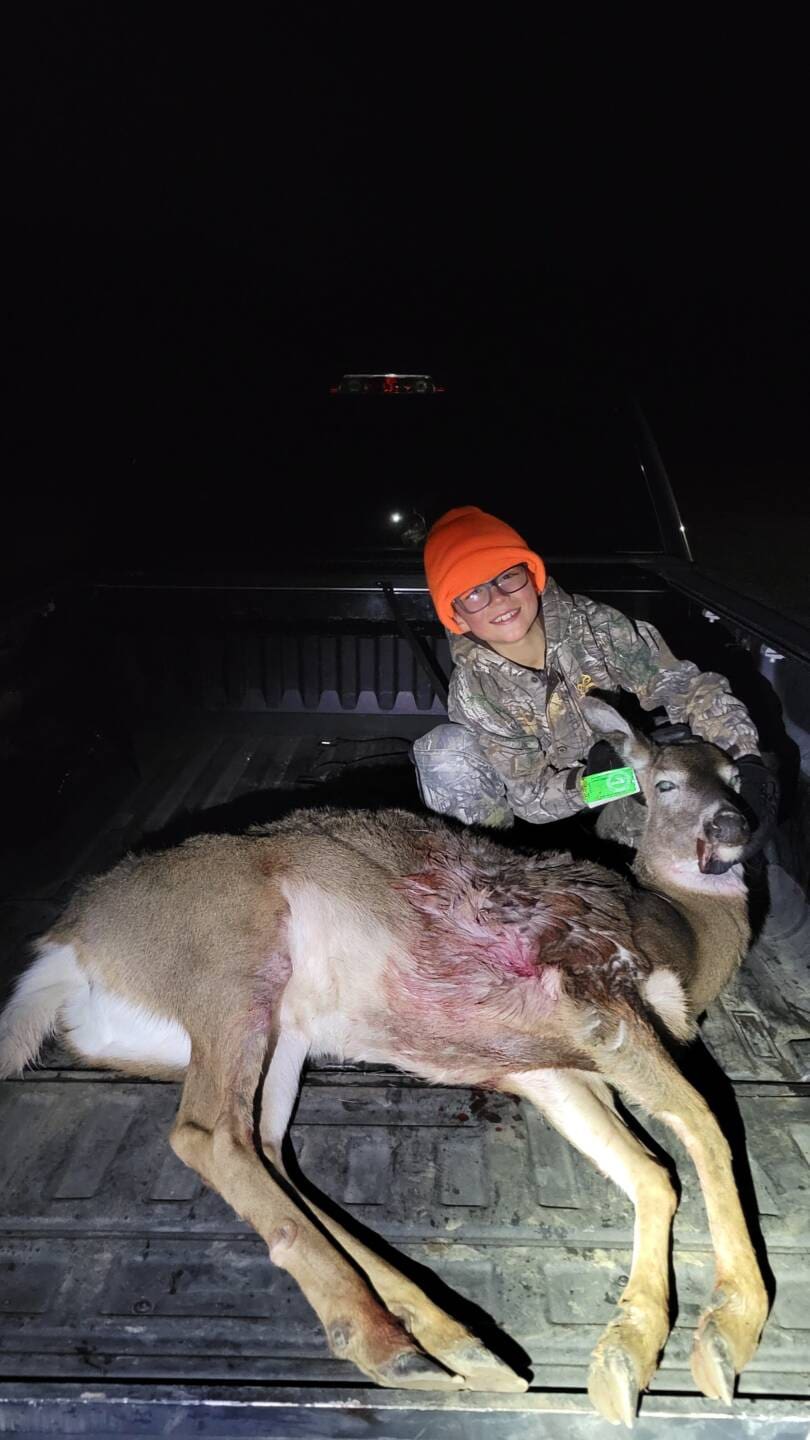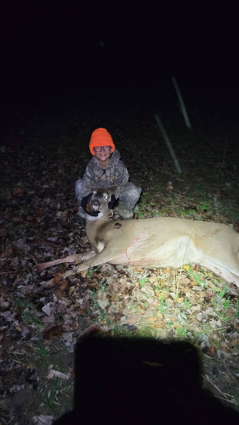 My son shot his first deer the other night. It was an amazing experience. Around 4:25 we spotted a black cat out along the fence row. As I pointed it out to him, he says “dad aren’t black cats bad luck?” And I told him “for me almost every time I see a cat I see deer!” Which he replied “well maybe its bad luck for the deer!” About 15 minutes later 3 doe came out of that same fence row. He set his eyes on the first ,about 120 yards out. When he shot I watched the doe jump in the air about 5 feet! Then the whole group just looked around. I told him rack another one in. As she finally turned broad. I said easy on pulling the trigger. This time I was sure he hit her good. She maybe made it 50 yards before piling up. Now in my household my boys will not shoot something they can’t clean. So the last 4 years of helping him learn how to field dress a deer paid off! He (9y/o) along with his younger brother who just turned 8 Field dressed her and prepared her for processing, which we all worked together to do. God has blessed us time and time again. And I’m so proud I can be a part of teaching my two boys how to step up on being men and enjoy the many gifts of being sportsman.