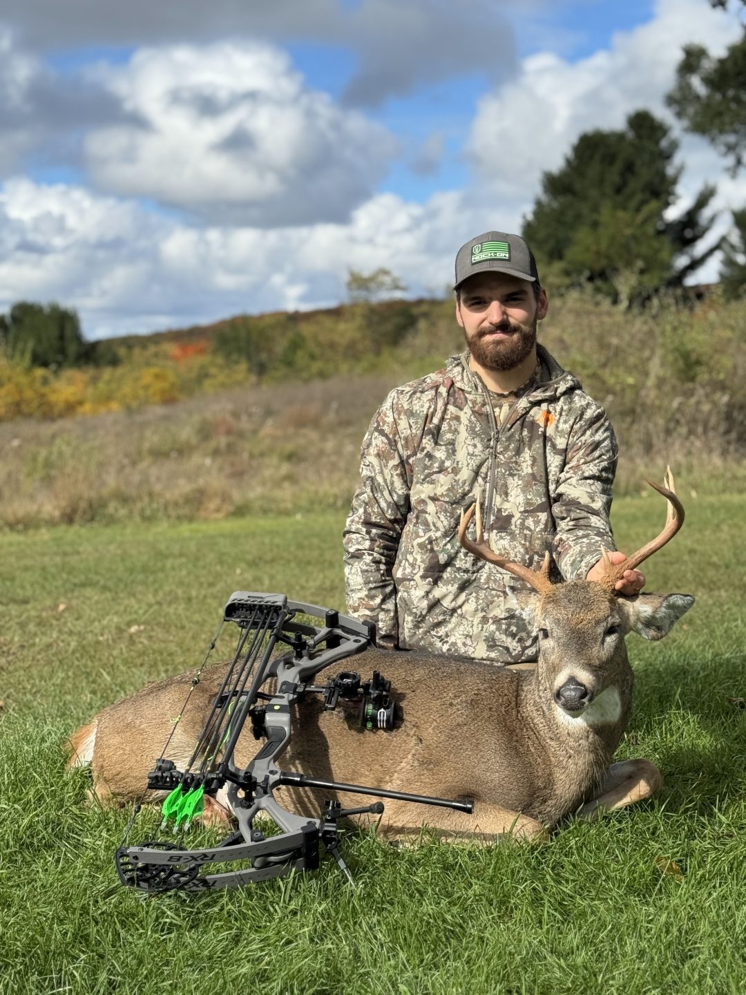 Spotted three 8 points 100 yards away, they were feeding there for 45 min. With 30 min of light left I rattled, the youngest buck responded first, then the more mature one behind. At 35 yards they switched places, he walked straight at me until 15 yards when he quartered to me. Let the deer lay overnight because of evidence on arrow. Ended up being 1 lung and liver shot. Tracked by Calvin Dennis with Scent Hunter Tracking, highly recommend. Found 125 yards from shot.