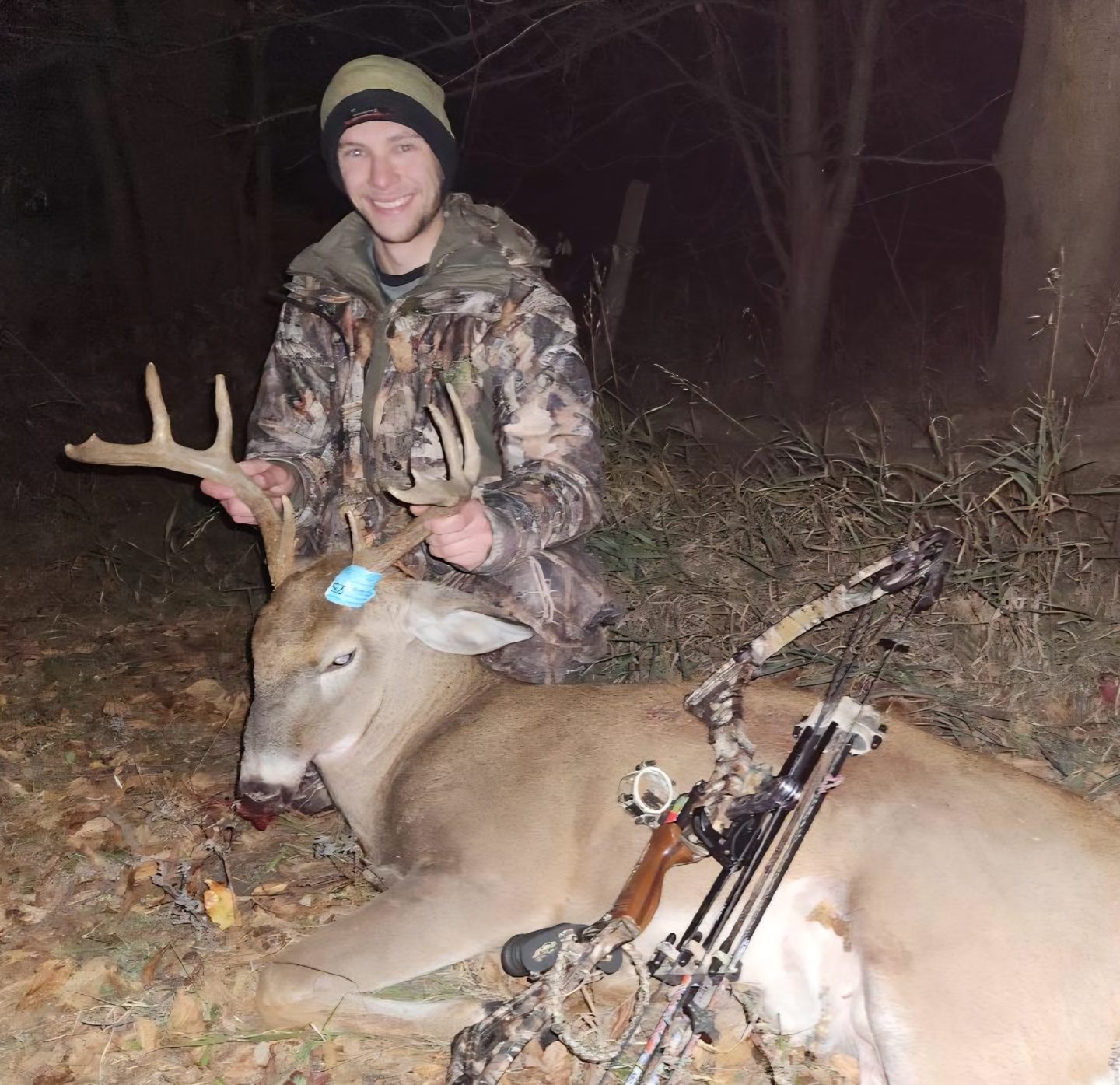 Watched this buck for about 30 minutes with a group. He finally worked his way closer with a doe and left to come to a grunt call. Presented a perfect shot at 20 yards.