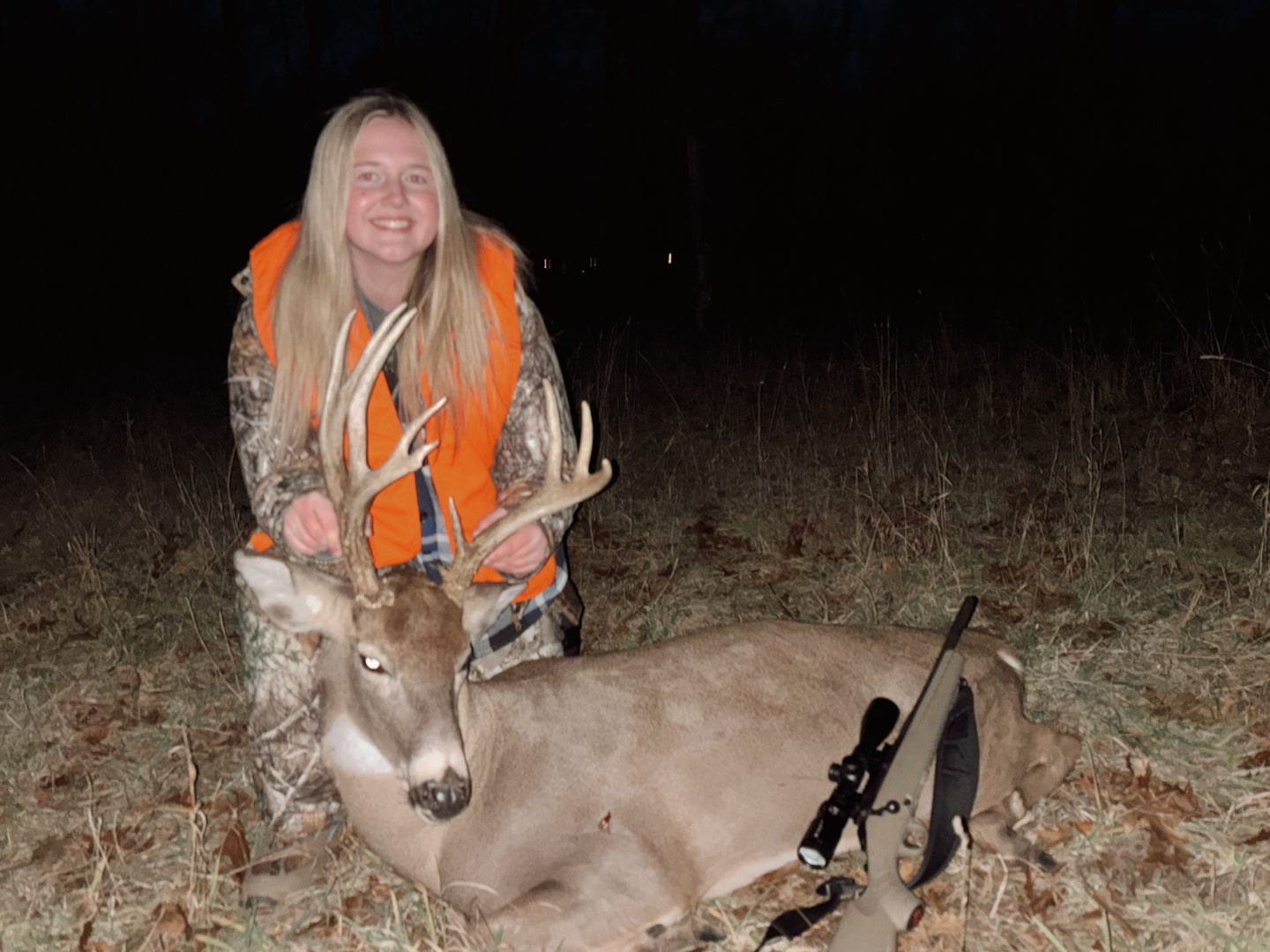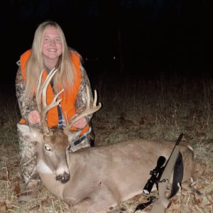 Gracyn Bissonette and her Dad arrived at their property at around 2:30 PM. It was a super slow couple of hours. Around 4:45 PM, her and her dad see 15 deer come out of the woods and into the field. Gracyn spots the one buck that they have been after, the one buck that she really wanted to shoot. The buck gives her a quartering shot at 40 yards. She makes a perfect heart shot, and the buck goes 10 yards before dropping. This is a very memorable hunt for Gracyn and her dad.