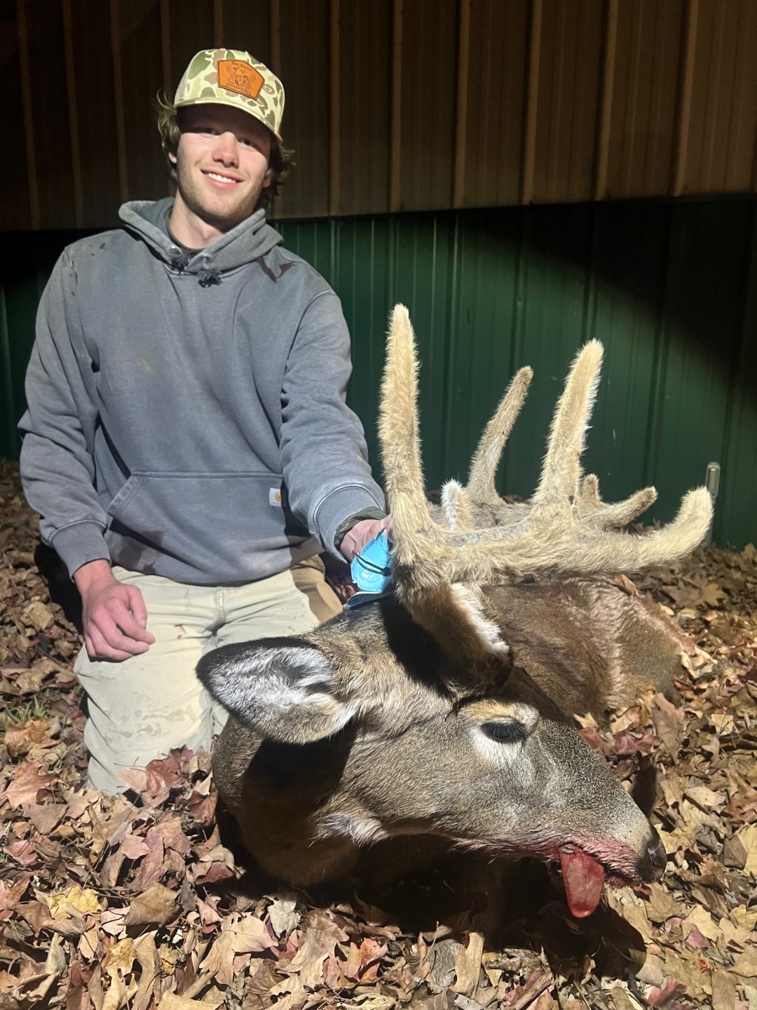 I Looked to my left and saw him standing with 2 other bucks at about 50 yards and noticed what I thought was velvet on his antlers and then dropped him with my 450. – Griffin G