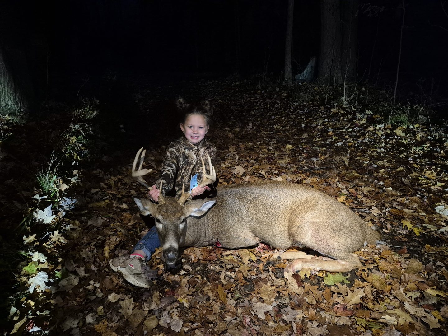 First deer! Shot at 17 yards, piling up after 30 yards making an exciting first deer!
