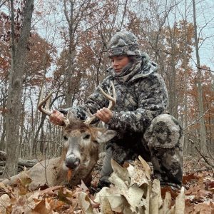 Woke up at 4:30, laid in bed thinking eh, might just let the woods rest for a day. By 5am I was still wide awake, trail cam going crazy with activity, so off I went. I knew I heard him coming in, quiet with the leafs but loud with his steps. He came in, made a circle and went right back out of my shooting window. I thought dang, he’s not coming back. 5 seconds later he circled back stopping just enough to give me a shot. Ran about 40 yards and dropped. Perfect heart shot. Blessed!