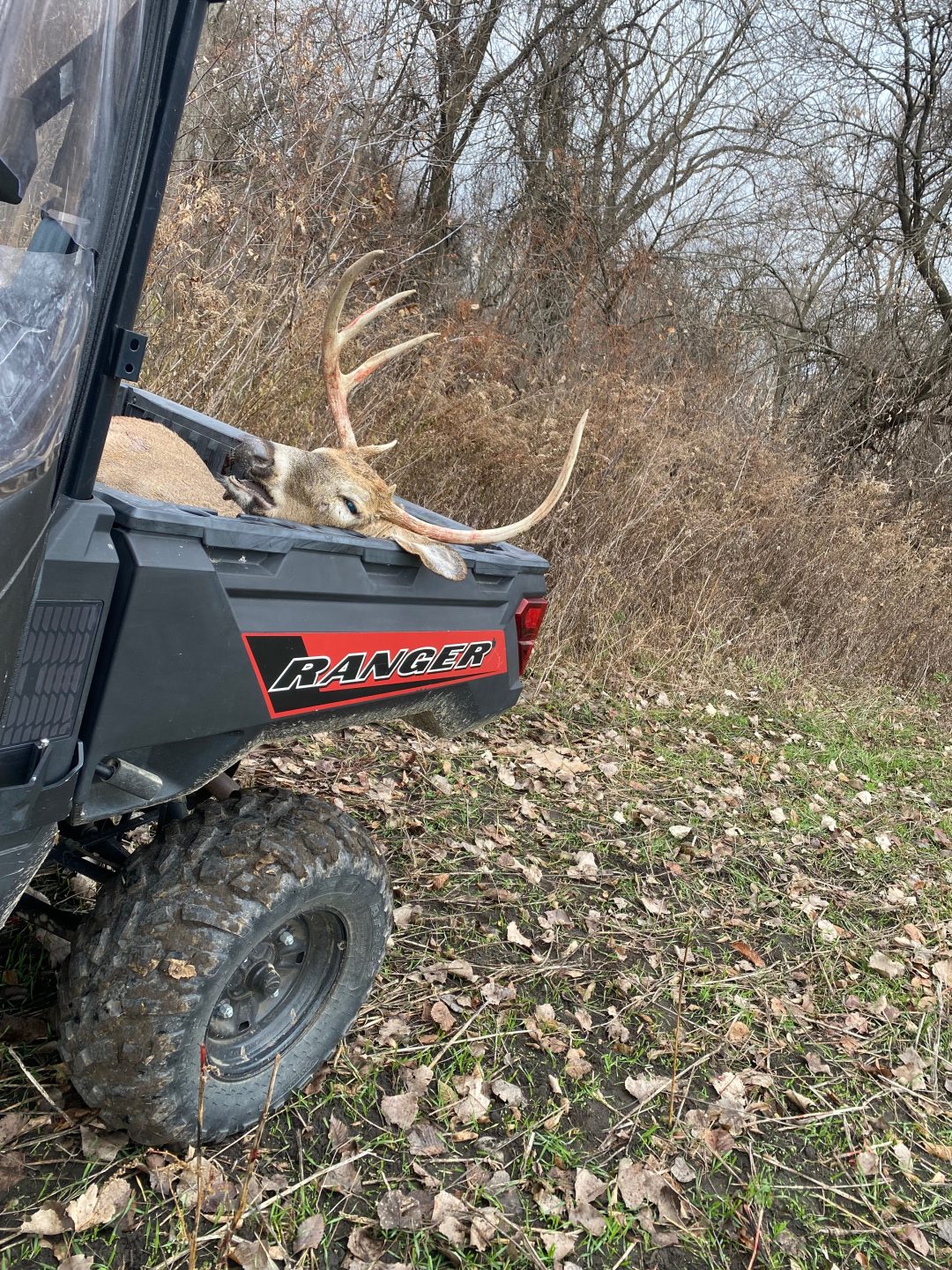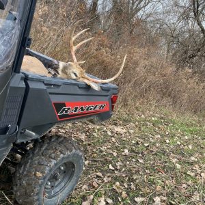 Buck came out about 7AM at 260yards. Let him pass with such a long shot. About 20-30 minutes later he popped back out of the woods at about 200 yards, and shot broadsided and hit one lung, walked about 30 yards, and that was that