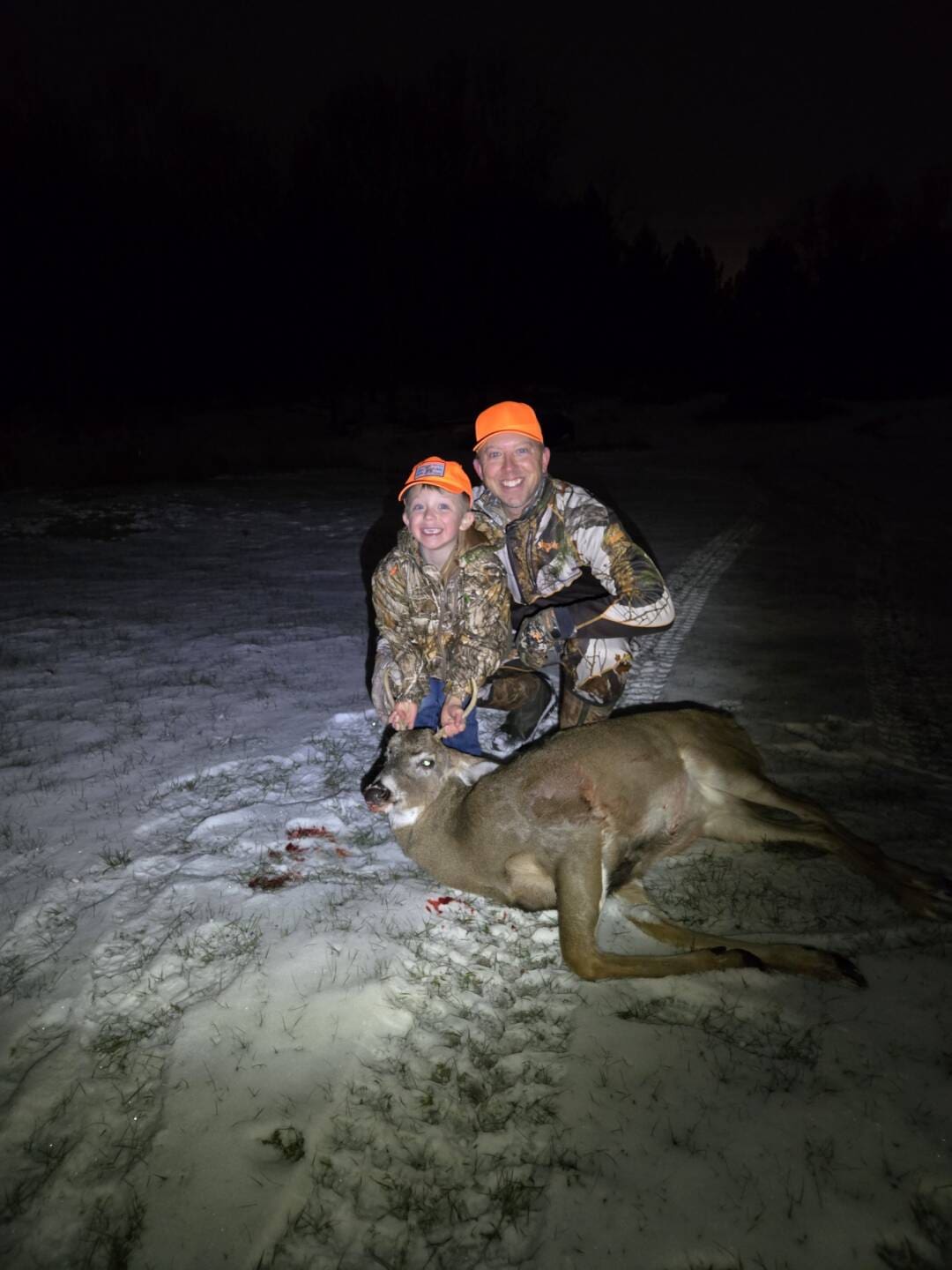 This young man here has hunted his butt off this year trying to get his first buck. He passed on a lot of small ones and had a huge 7 point at 60 yards that just wouldn’t take those last 2 steps to give him a shot. Well tonight was our last night to hunt and our freezer is empty so last 15 minutes of light he dropped his first buck in his tracks. He is so happy and I am a very lucky dad to have a son who already has a passion for the outdoors