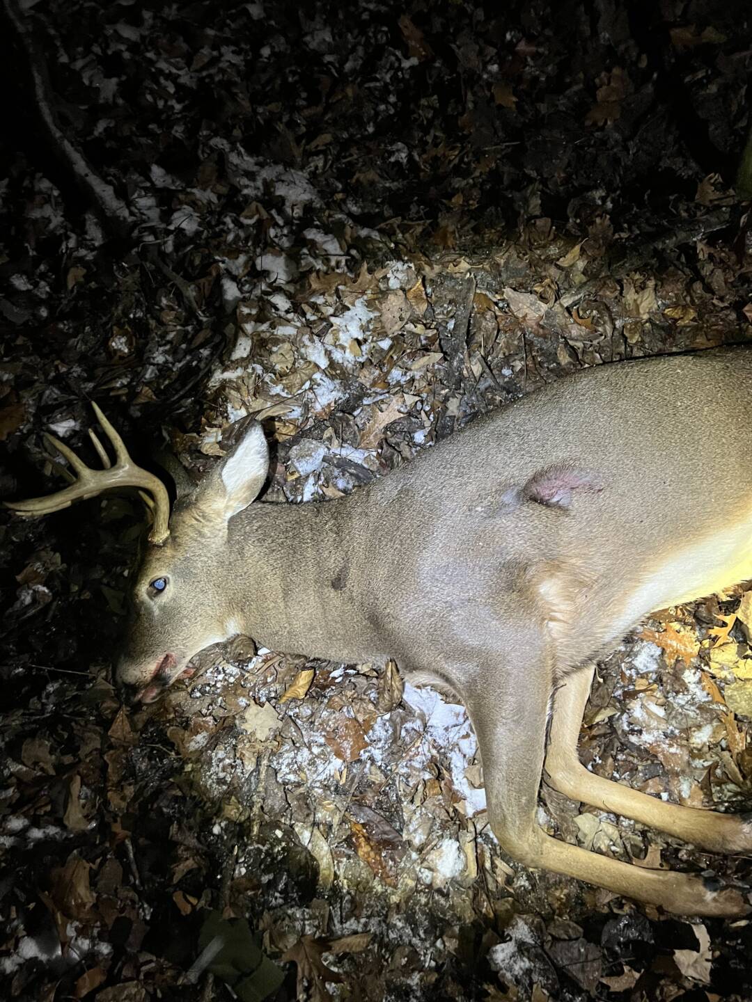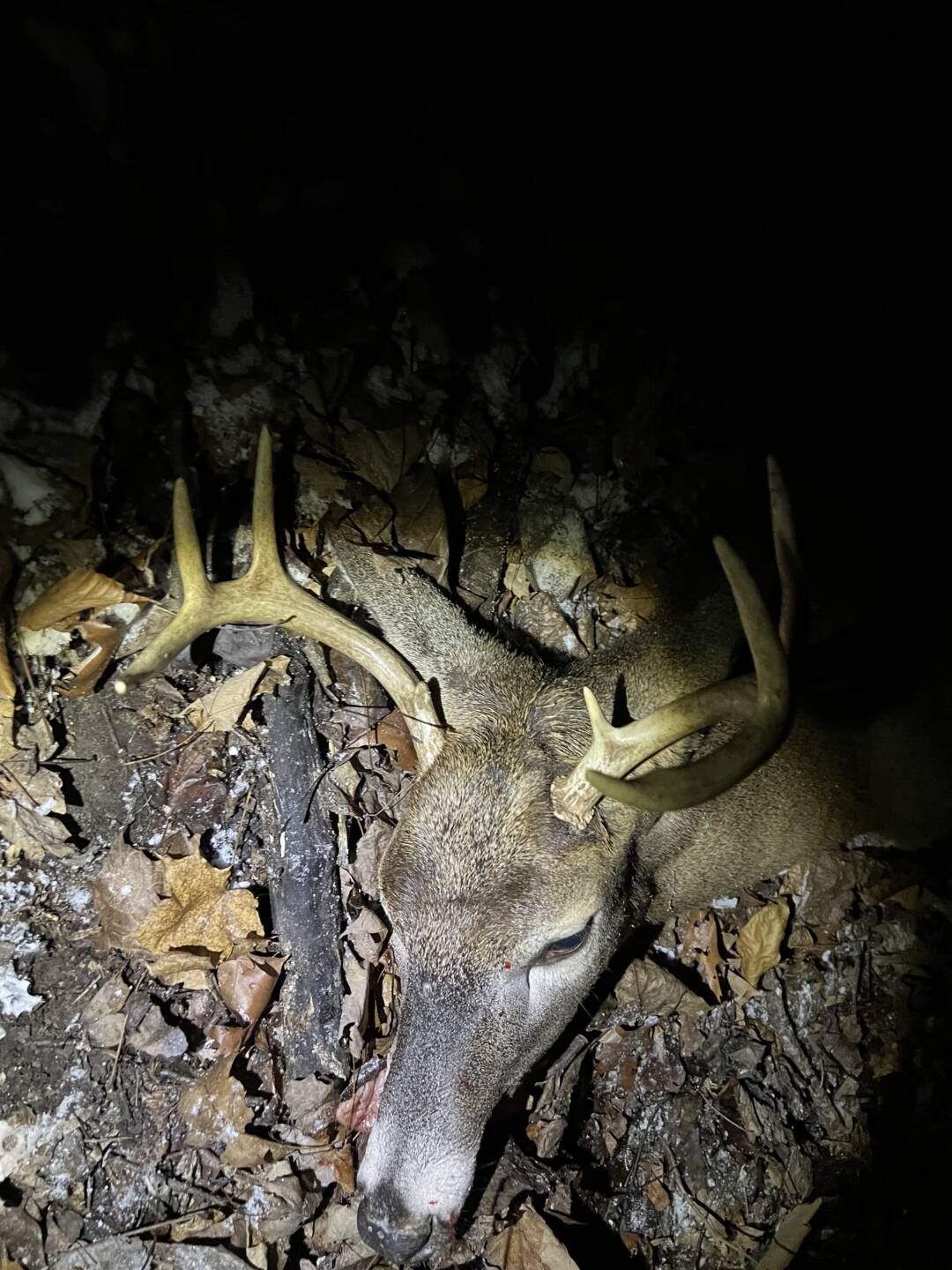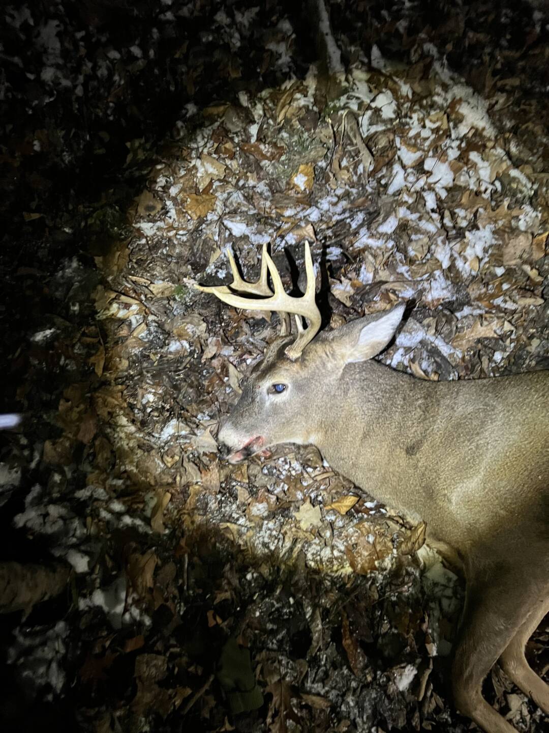 So there was a 2 point I wanted to shoot but I wasn’t allowed to so I got really mad and I prayed and the 8 point walked right at 20 yard and said im shooting that one and my grandpa thought I was shooting the 2 point and I said noooo there is a 8 point and then BOOM my 350 blew his heart out and I went crazy because that was the first deer I shot he went about 70 yards with no blood and I found him