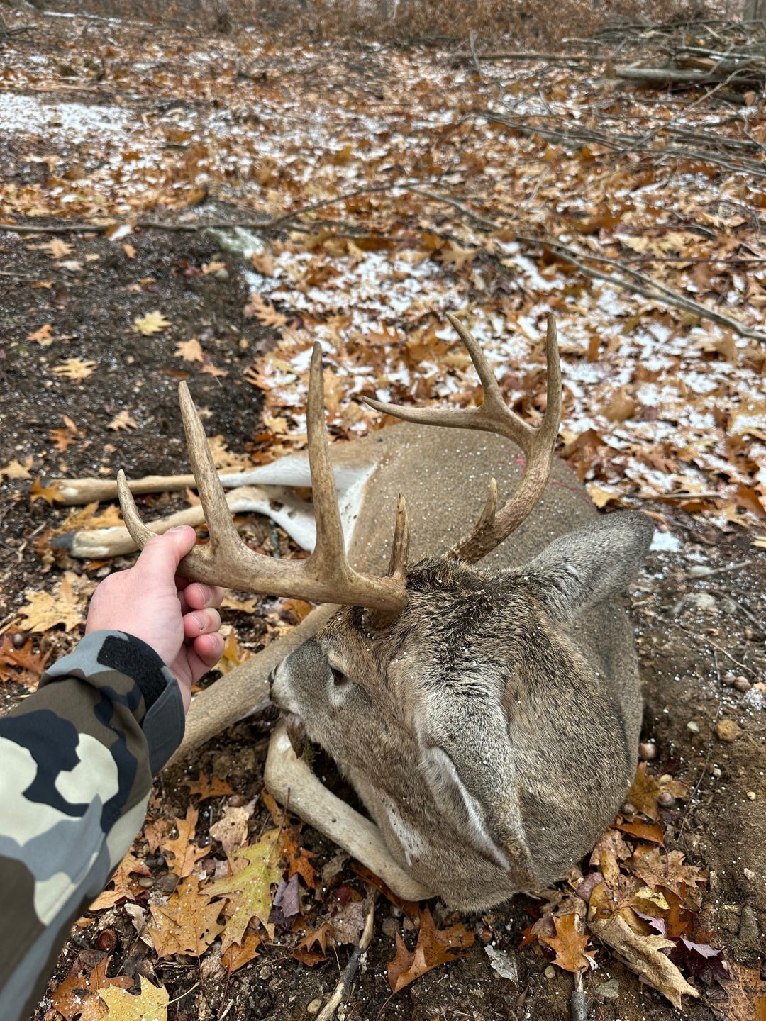 Watched a Sow and two cubs run through this morning a couple ridges over, thought my day was shot. Couple hours later this 8 point comes strolling by at 10:25am. Dropped him in his tracks! My Grandpa must have been looking down today, broke my 4 year no buck streak today! Was a great eventful day to say the least!