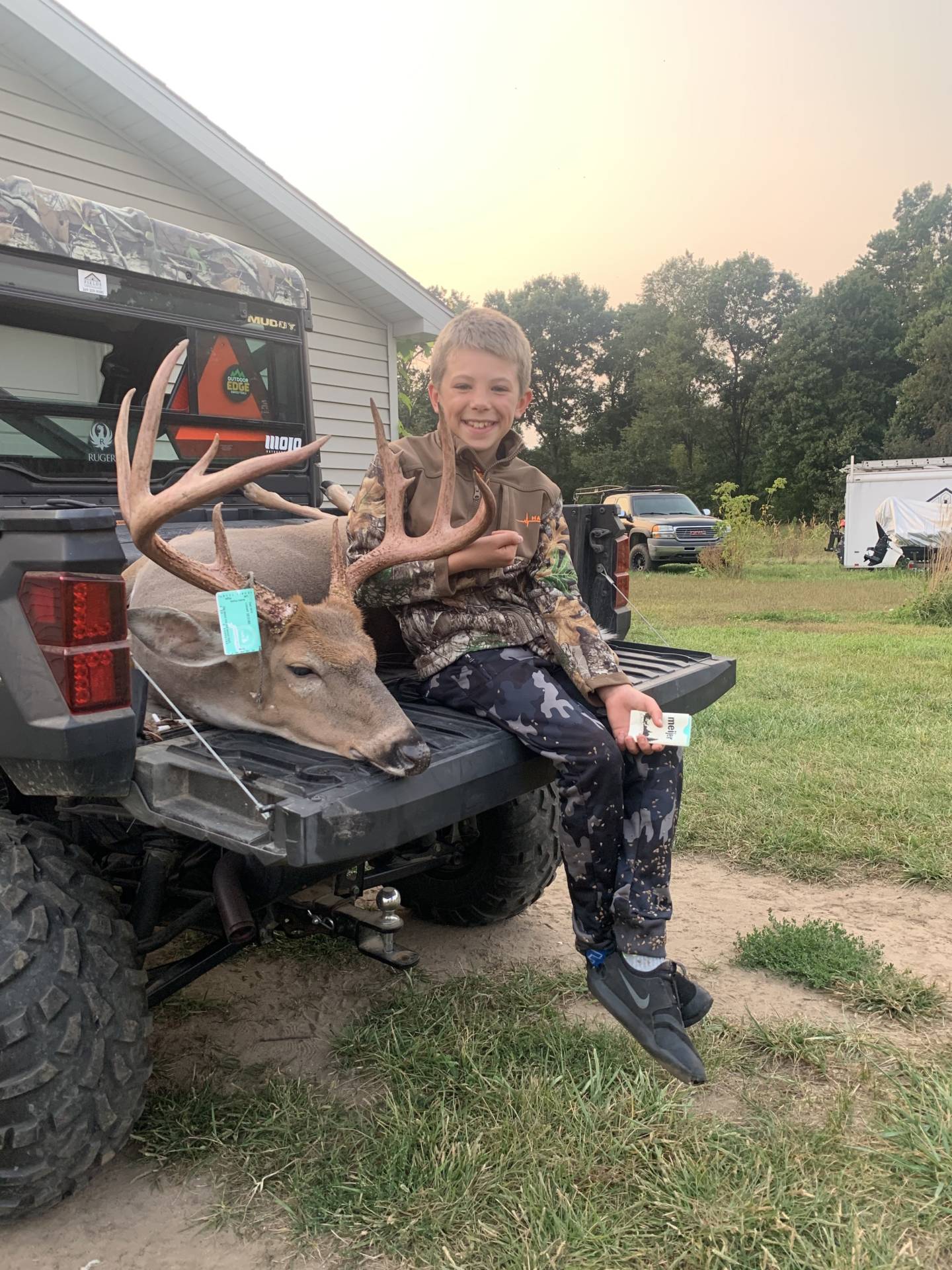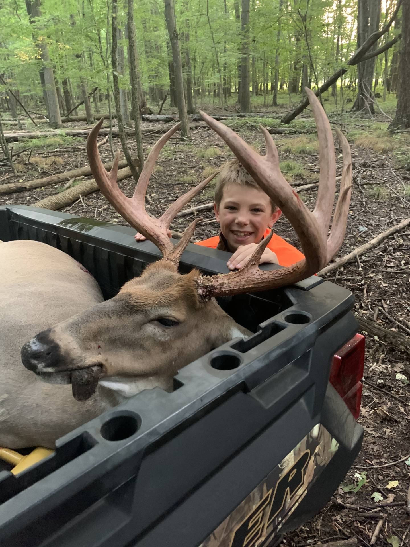 Hunter and I went through a roller coaster of emotions after the shot. I’d give back all the deer i have shot in my life to watch him do it again! He dropped him like a stone with his 350 legend at 75 yards. Rough green was 160 1/2”. I love you buddy- Dad.