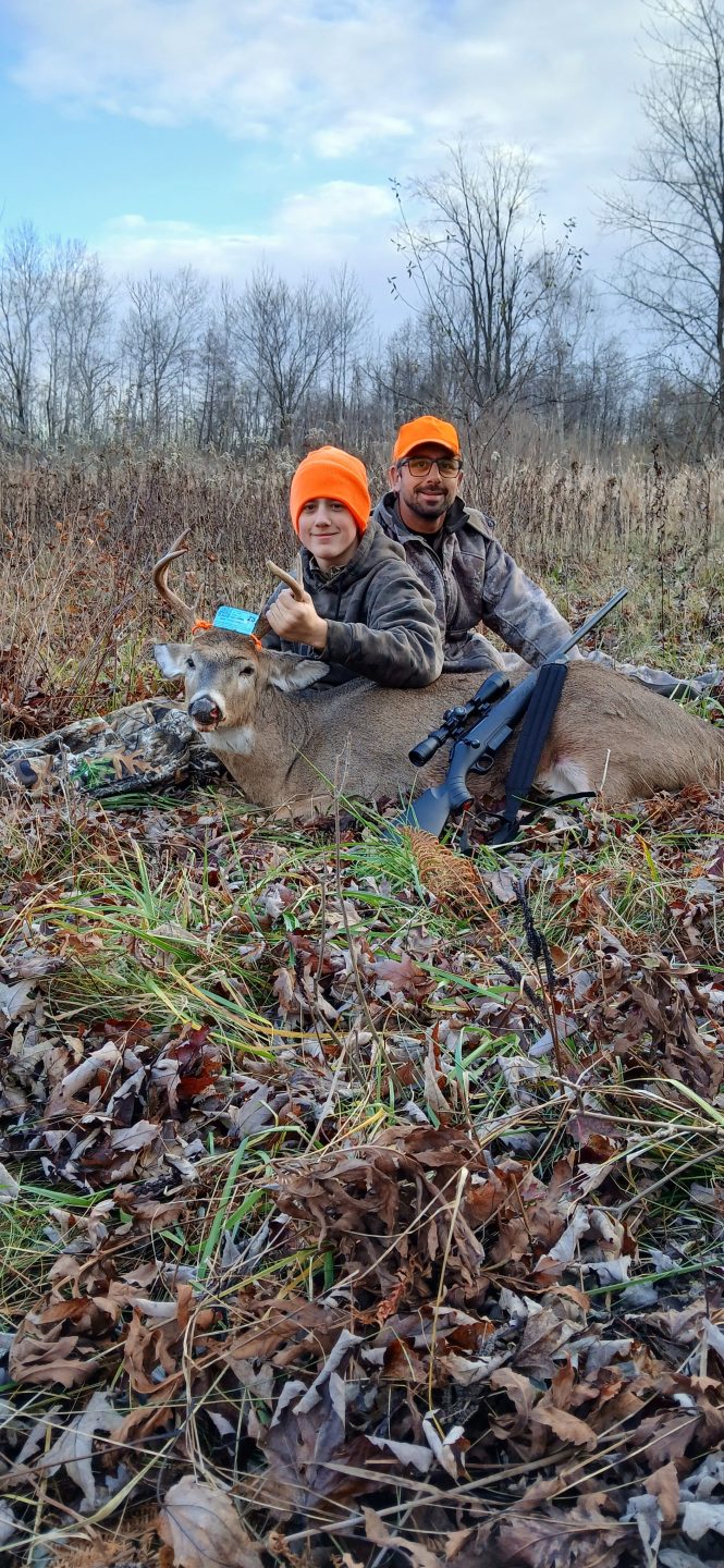 Took my 13 yo out this morning. Wind was perfect we got in and set up by 6:10am with no problem. As always the boy passes out. As I sat there i thought I seen a deer at about 650ish. I looked though the binos and there he was 35 yards in the food plot. I woke hunter up and thats all it took. 35 yard shot with the 450. Perfect double lung he ran maybe 50 yards. We waited a hour before getting down and finding him.