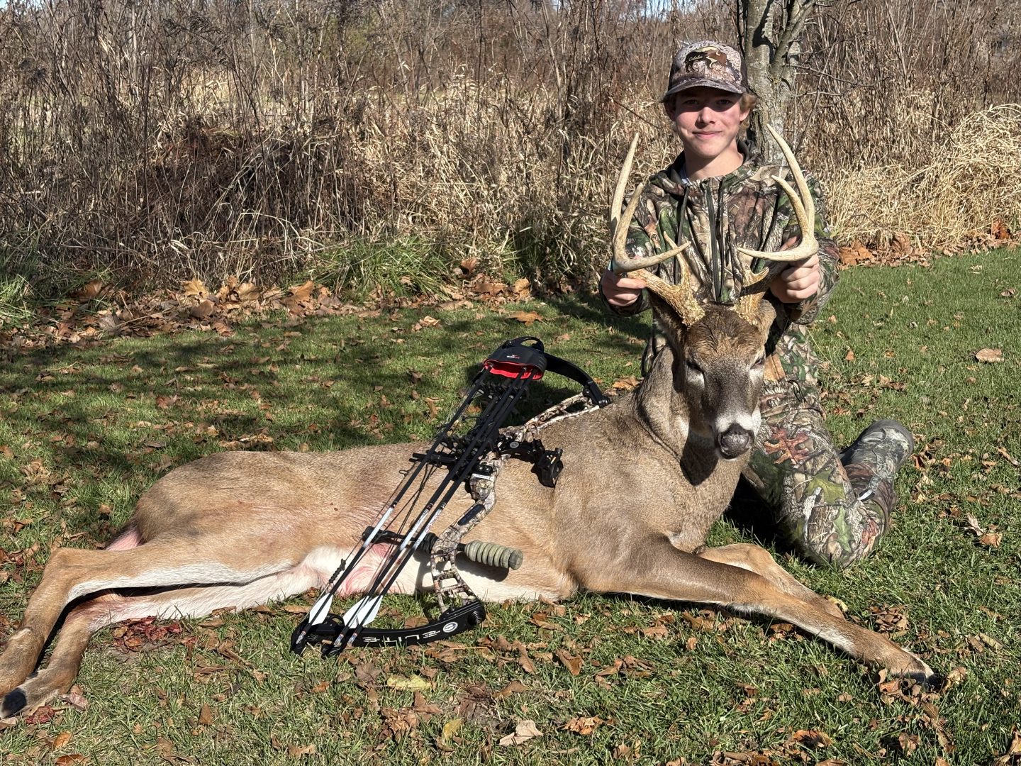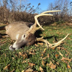 After thinking it was a good idea to quit my job so I could hunt the rest of the season, I have been in the woods both morning and evening for a week straight. And wanting to sleep in this morning due to how exhausting hunting can be I’m glad I didn’t! He came within five yards of my tree and didn’t stand a chance! Also my second buck!!