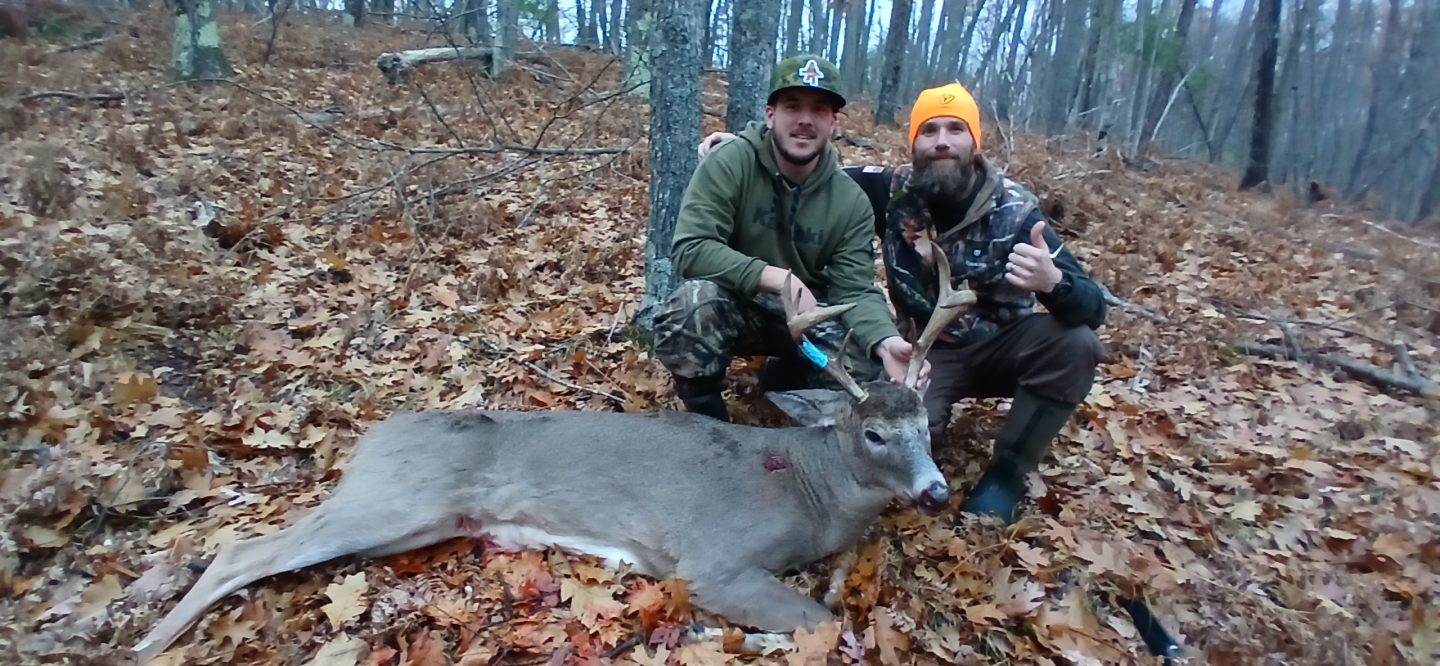Came over a hill with another good buck pushing a doe around. The doe turned and came right by me at 20 feet and this buck followed her line. Dropped in his tracks at 15 yards. Missed the other buck twice as he ran off. Tried doubling up on them.