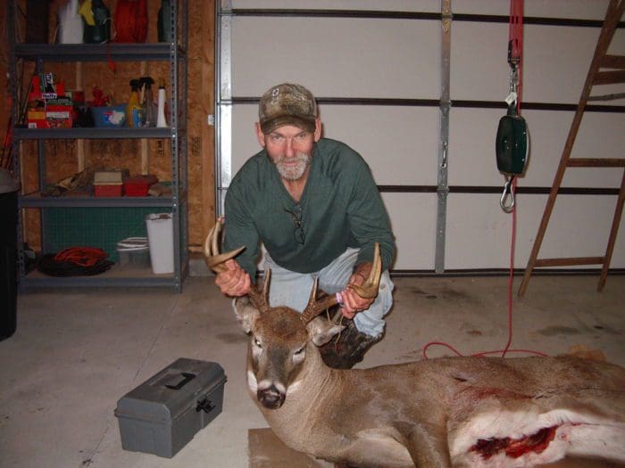 My sons and I were scouting for bucks and found a place loaded with scrapes. We came back later that day and I was able to arrow a buck that was cruising for does. Boots on the ground baby!