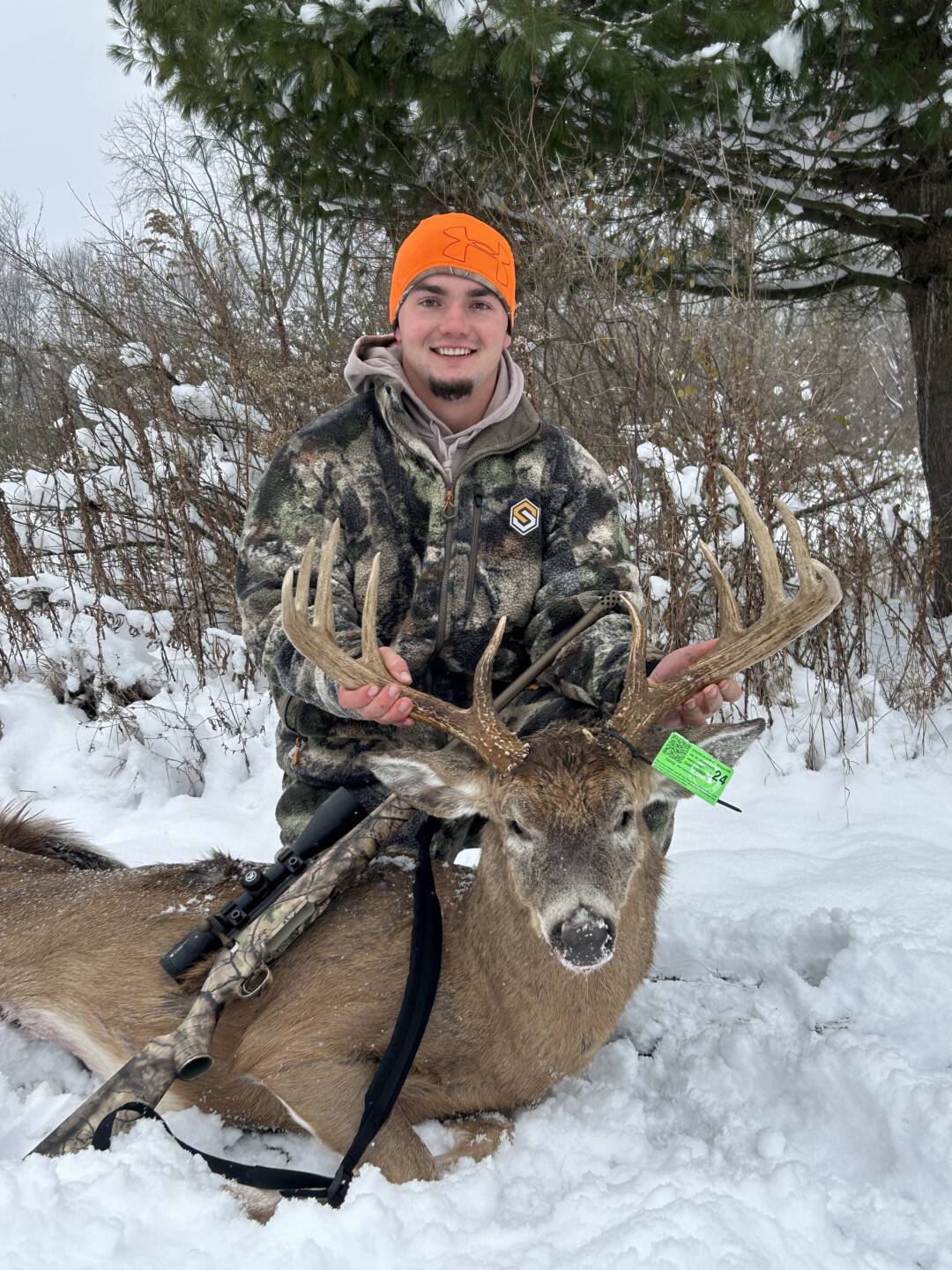 Still amazed that I was able to harvest this deer. Definitely one that me and my family will never forget. Shot him with a 450 at 62 yards.