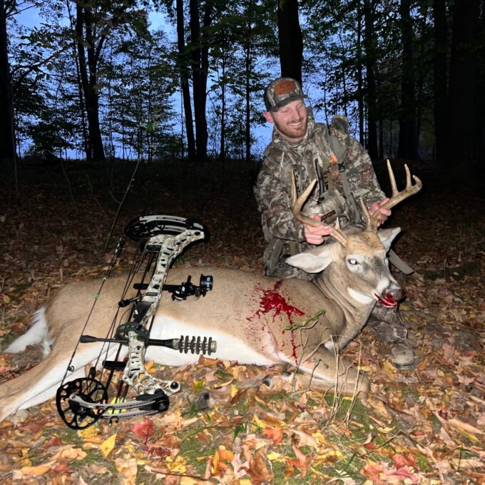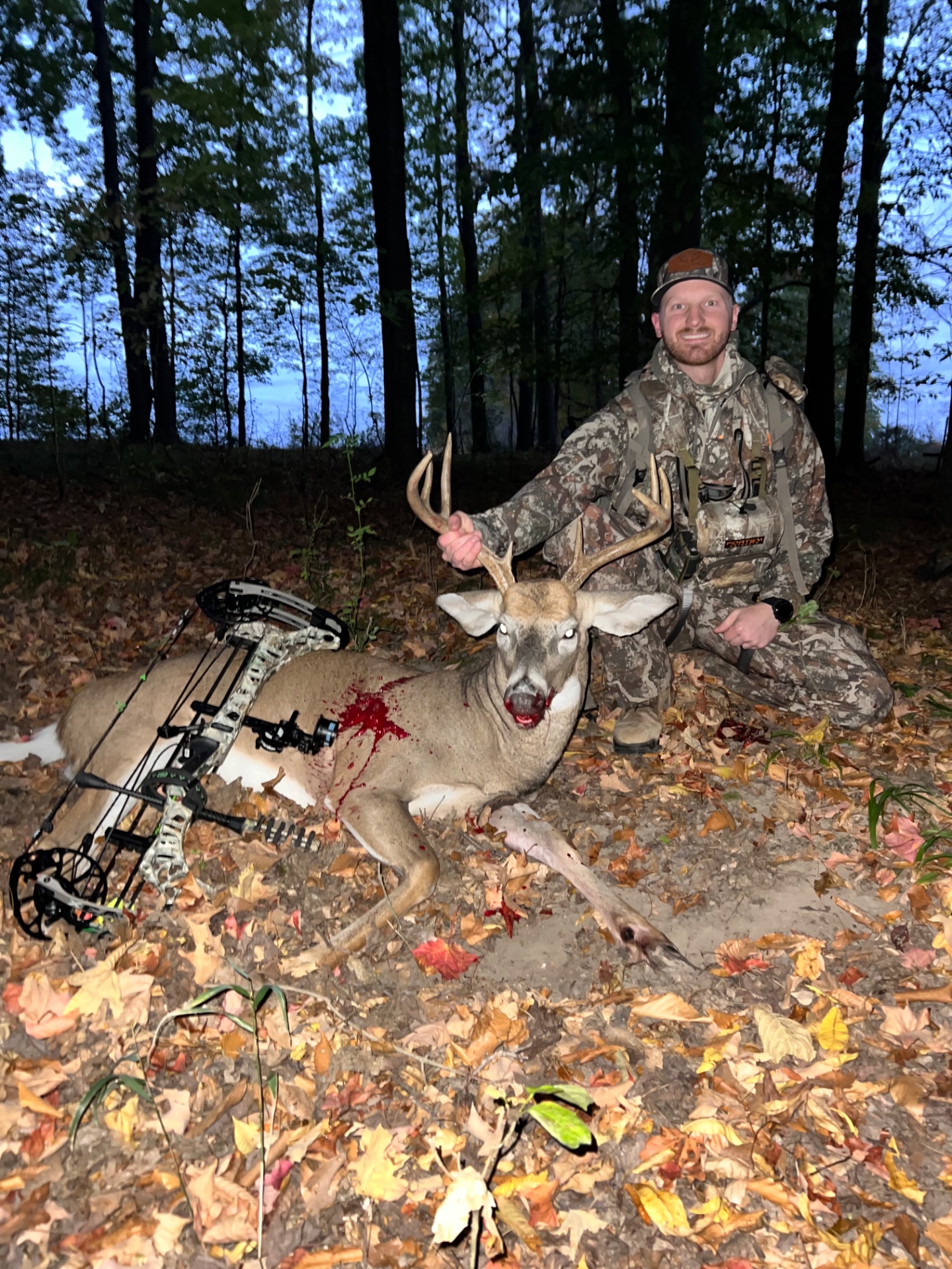 Sometimes, it works out so perfectly that it seems too good to be true. This was one of those hunts. I put in a few watering holes this summer, and this buck only had grabbing a drink on his mind. Showed up on camera 4 days ago, and this was the first time he daylighted. After grabbing a drink and hitting his horns on the side of the watering hole, he went broadside at 18 yards. Back of his heart and both lungs made him fall after going just 40 yards! Unreal hunt that I won’t soon forget!