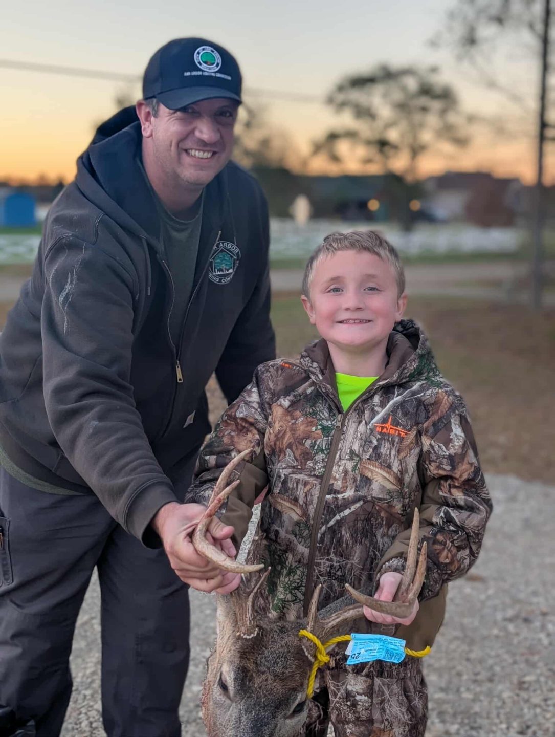 My 8 year old grandson Jacob harvested his first buck. It came into the food plot about 15 minutes before end of shooting time. He stayed patient and calm and made a good shot. It didn’t bleed a drop and we couldn’t find it that night. It was plenty cold and we found it the next day about 60 yards away and had a great celebration!