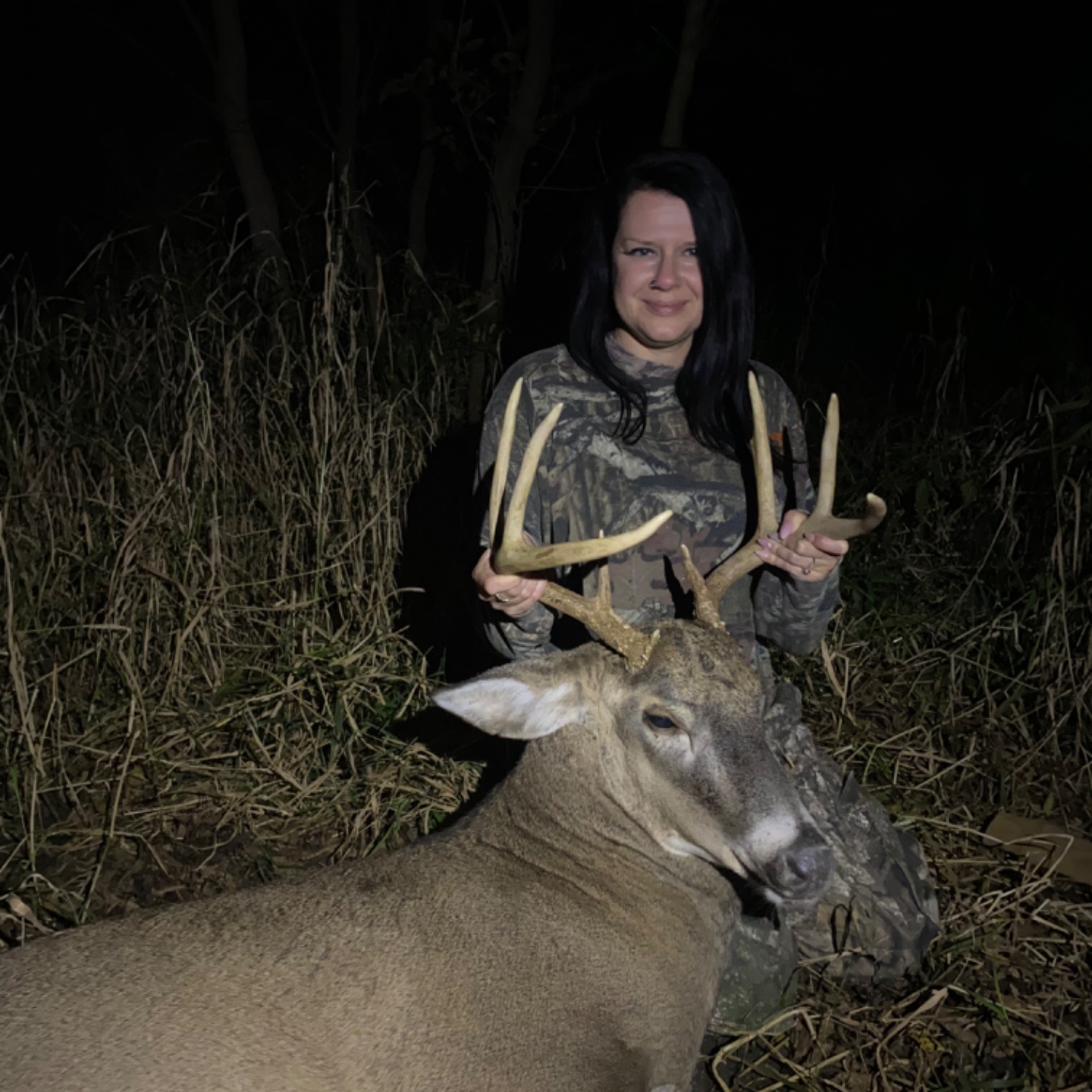 My son tagged out during youth hunt so the wife was up to bat we went out Friday with no deer in sight. Then yesterday morning (9/20/2025) I got a picture of a nice buck going into the bedding area for the day at 8 am. I sent the wife a text and asked if she wanted to hunt that night and she said she did. So I left work at 3pm picked her up from the house and we headed out to the spot. We got set up 15 yards off an active scrape around 4:30. We sat there with absolutely no movement so around 6:45 I decided to do some rattling and not 15 minutes later a beautiful 8 point showed up worked the scrape and gave her a perfect broadside shot at 15 yards! This is her first and biggest buck to date. He weighed in at 216 pounds dressed out!!