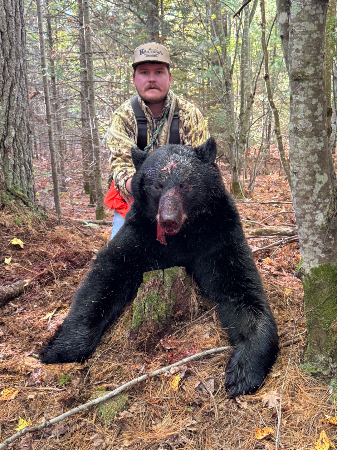 Harvested my first bear with my grandpa. The bear wouldn’t tree, so it got pretty exciting. Thank you to everyone involved!