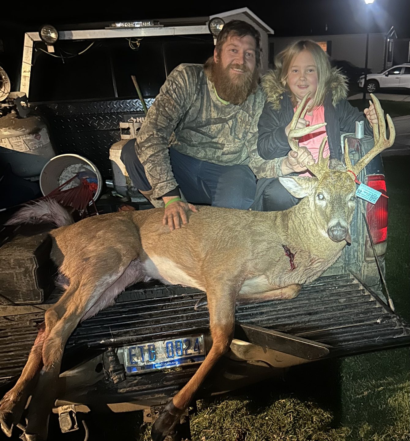 2nd evening sit with my daughter, had a doe and yearling pop in and out of standing corn into our field. last time she popped out this guy was on her tail. he walked into about 50 yards and i let the bushmaster eat. dropped him in his tracks
