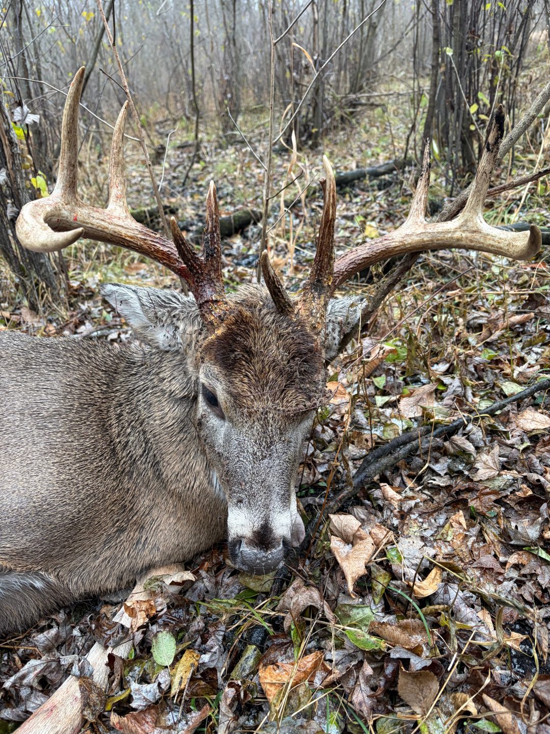 It was cold and raining. I was starting to regret my decision to go out this morning. Around 9:00am a doe came cruising by and he was hot on her tail. Hit him with the 350 and he ran about 30yds and piled up.