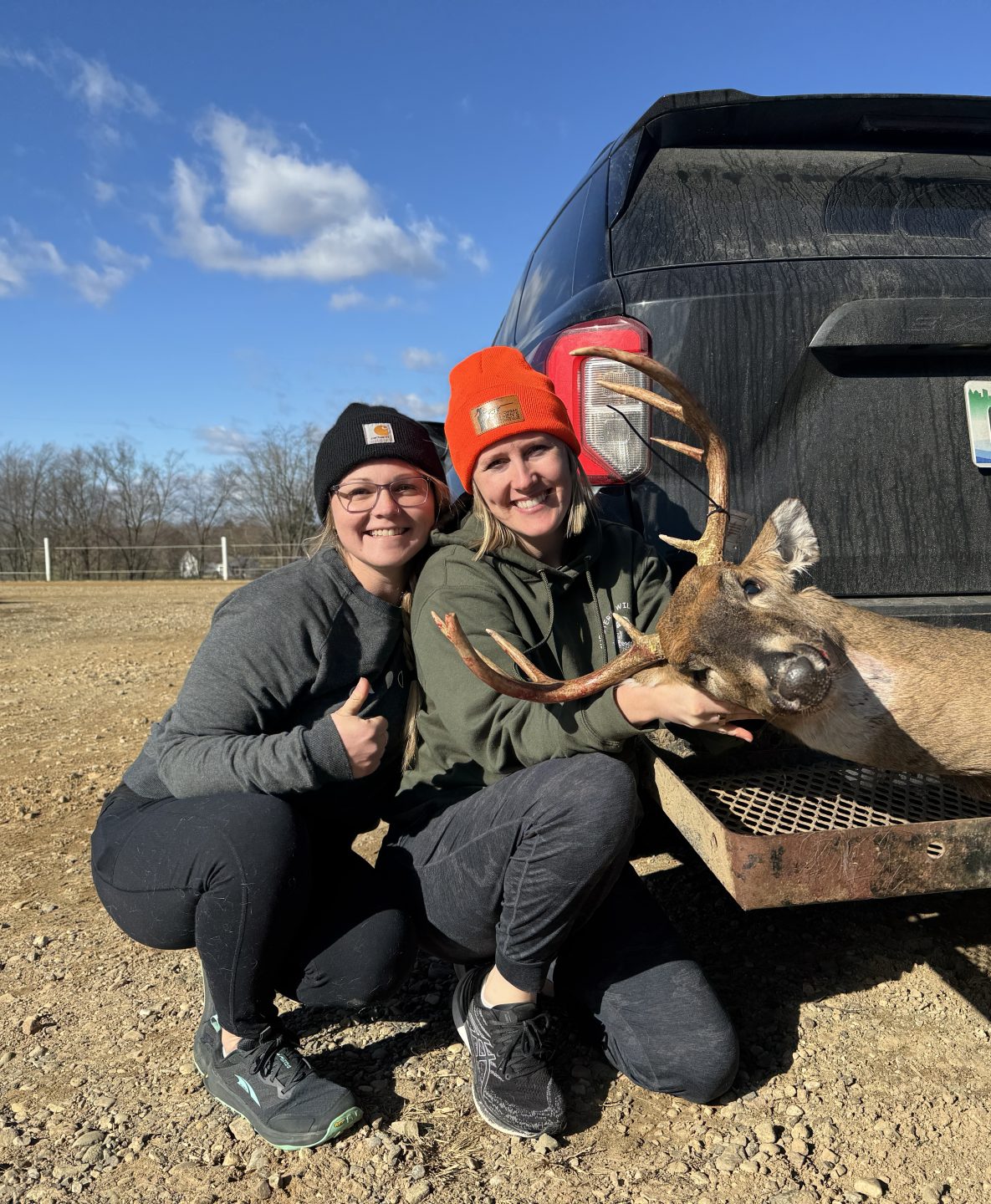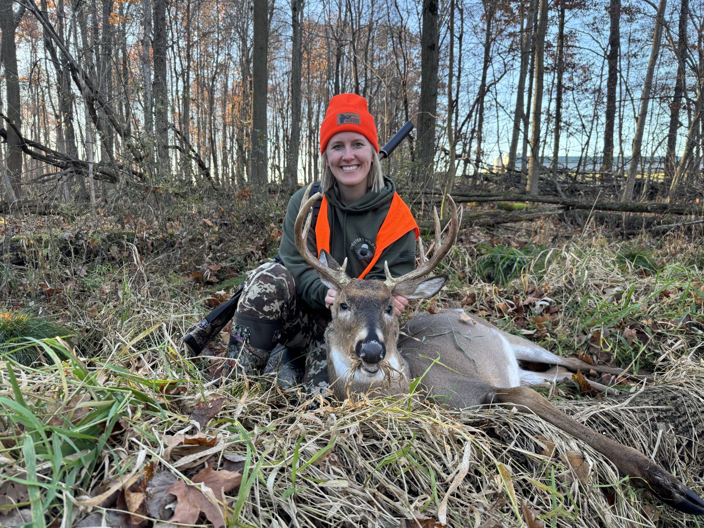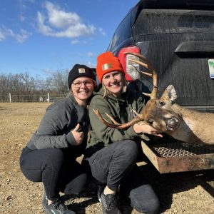 It’s always been tradition that the guys in my family go up north to my Dads property for deer camp. Men only. I’ve always respected that tradition but when my husband and I bought our own property, I made sure to deem it girls only for opener! I have no female hunter friends so my neighbor decided to sit with me to see what it’s all about. Opening day was slooow. But Sunday morning was beautiful. My neighbor grabbed my binos and goes “I see a boy coming!”. Made me chuckle she said boy and not BUCK. Sure enough it was this 8pt! Seeing the pure excitement my neighbor had after I shot and dropped him made this experience even better! She helped me drag it, load it and gut it. You can also see I put grass in his mouth. This was a tradition I learned in Italy, you give the animal their last meal to honor them. Awesome hunt!!