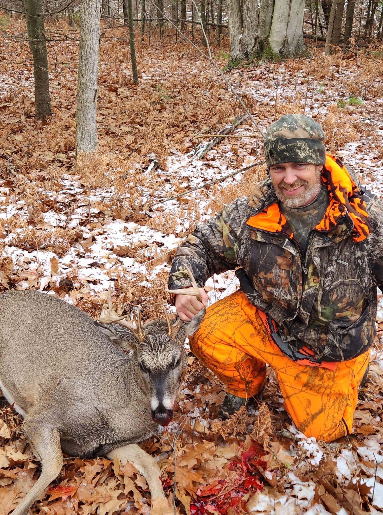 I was only able to hunt maybe 3 days the entire season. I had opening day off and had it set that I was going to take a doe if one came in. Well a doe and 2 fawns came running in I made a noise to stop them it worked. I made a great shot doe dropped but the fawns didn’t leave so I waited and watched the fawns for awhile. Then out of nowhere this buck came running in and tried to get the doe up when he turned broadside I made the shot. I watched him fall about 20yds from where I was sitting I was tagged out before 10am for the first time ever!!!