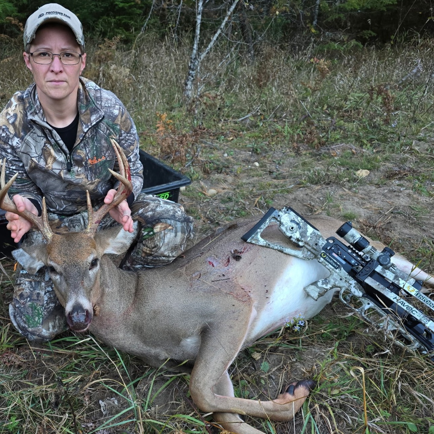 Was in the blind about an hour, watched a doe and baby come in and hang out, then a six point came in, with sense woods all around I heard noises still in the woods, as the six started to walk away the 8 point came out about 20-25 yards, double lung shot and knicked the top of the heart, went about 40 yards and dropped.