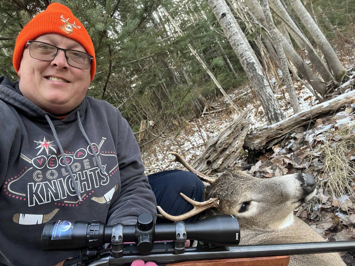 I was watching the u of m vs OSU game we had just intercepted the ball and won and this deer walked in. I had to quietly take my earbuds out and put my phone down. He ended up going back Into the woods and then 3 doe came in. He came back out and started walking away and then cut over and through the woods to the bait pile. He started eating And as soon as he raised his head I took a shot. He dropped right there!