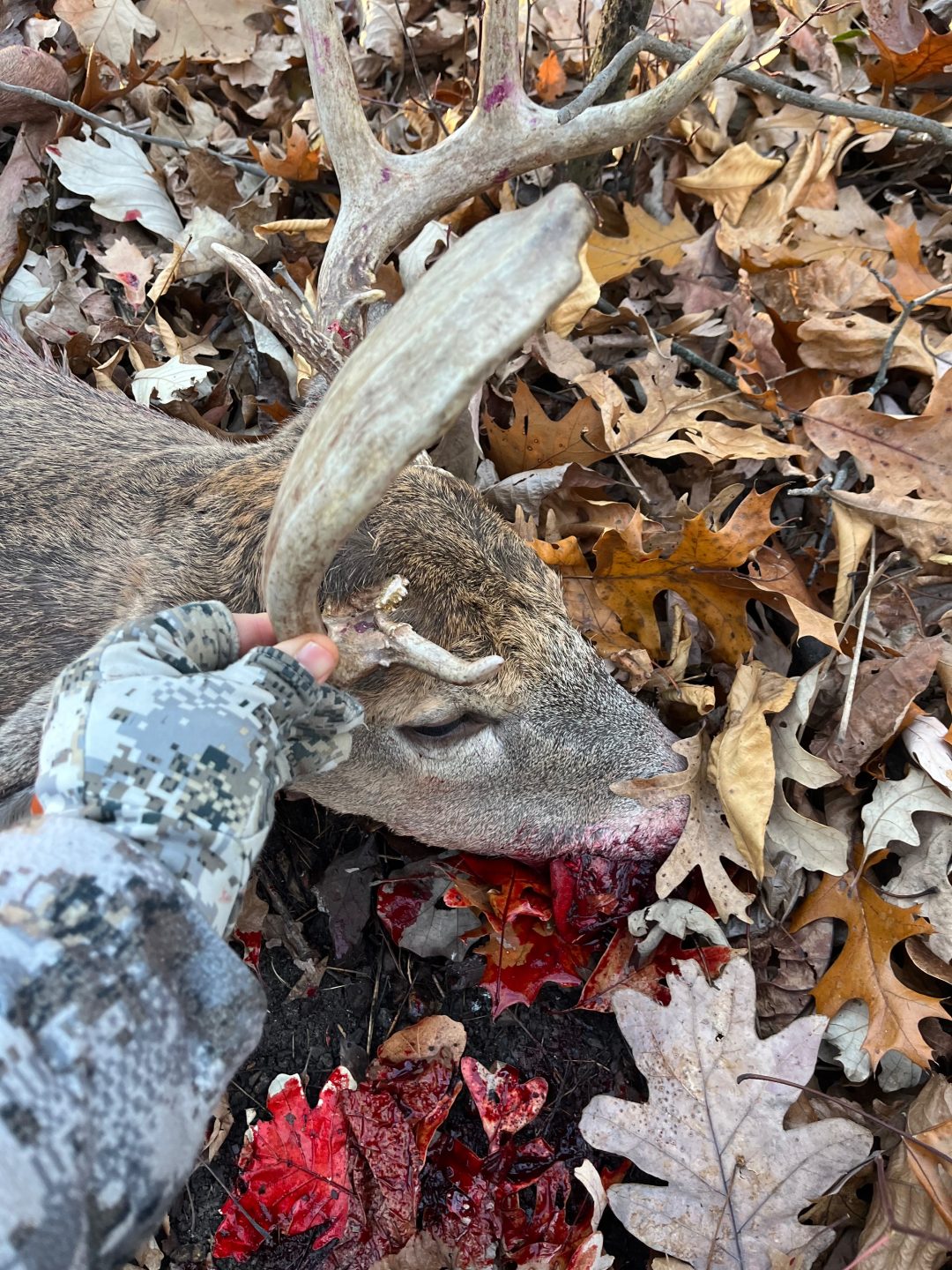 Haven’t seen this buck on camera in over a month, he can in hard to the doe decoy I had out, made a 50 yard shot and he didn’t go far at all, very pleased with his unique rack.