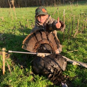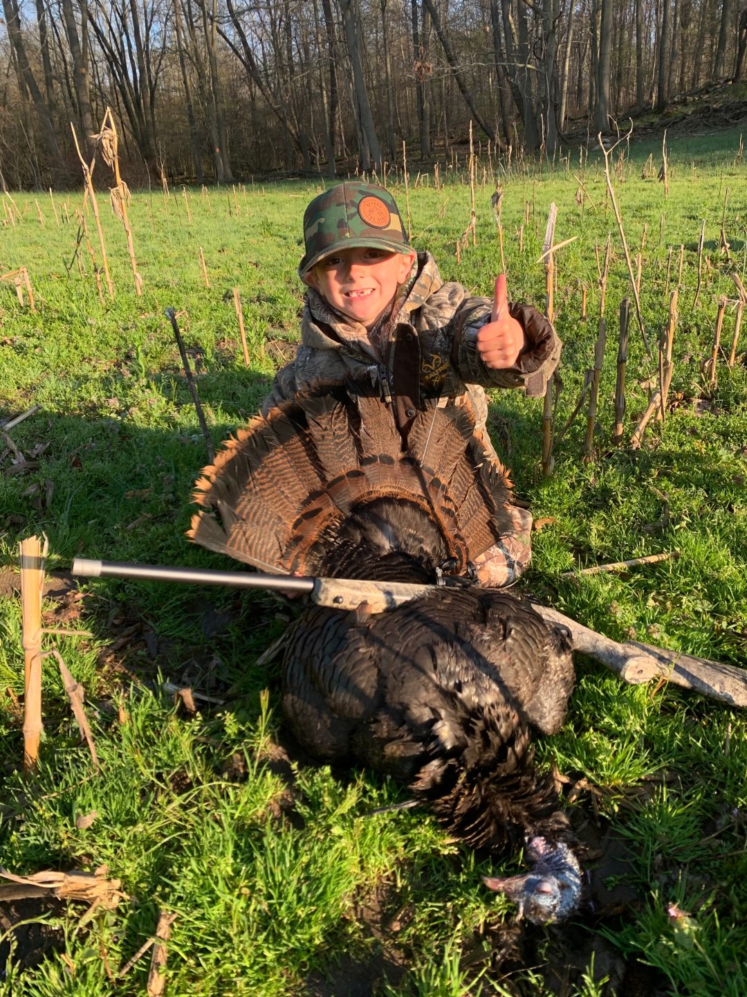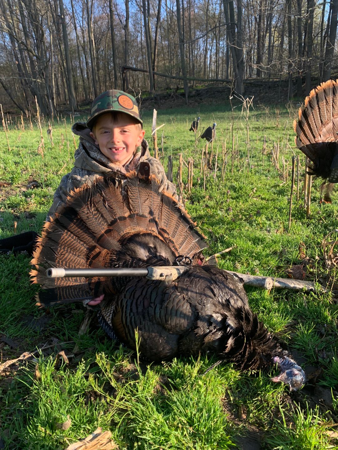 Little Joey managed to make a 40 yard shot on this bearded hen with his cva 410 and tungsten #9s!