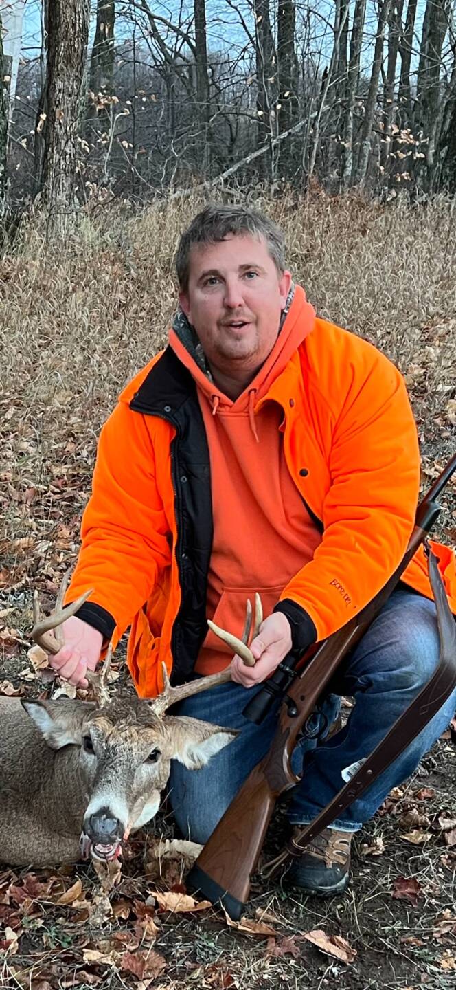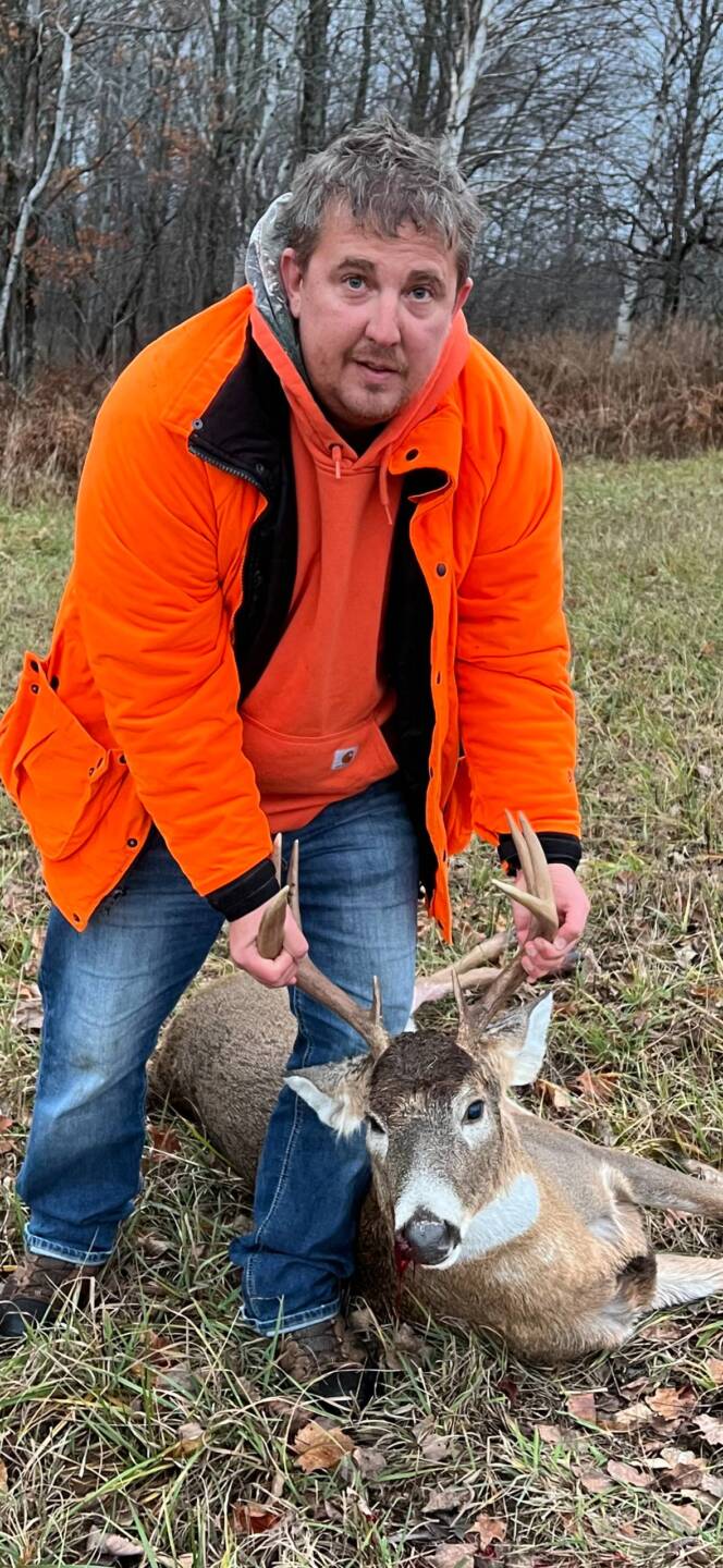 The tall 8 came in about 4pm. Very aggressive stomping and snorting. Took a look at my deer blind and realized the mistake he made. I waited until he got about 50 yards away, before opening the blind window. One shot from the 270. Double lung, ran 100 yards and piled up, just at the edge of the field and woods. I didn’t want to disturb my hunting buddies, plus I could see him piled up in the field. About a half hour later, I see a few does move into the west field about 200 yards out. All of a sudden the wide 8 appear at the tree line looking at the does. He starts running toward the does about 150 yards out, the rest was history. Perfect shoulder shot, both lungs and clipped the heart. He ran 40 yards and piled up 5 yards into the north tree line.