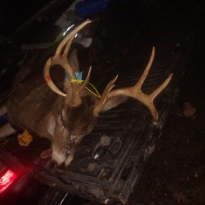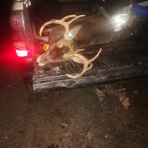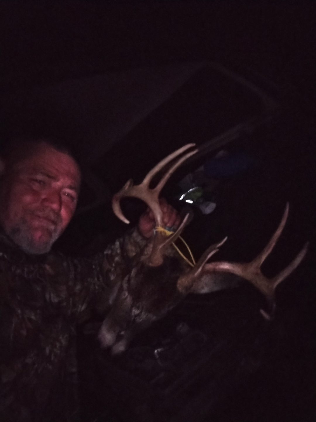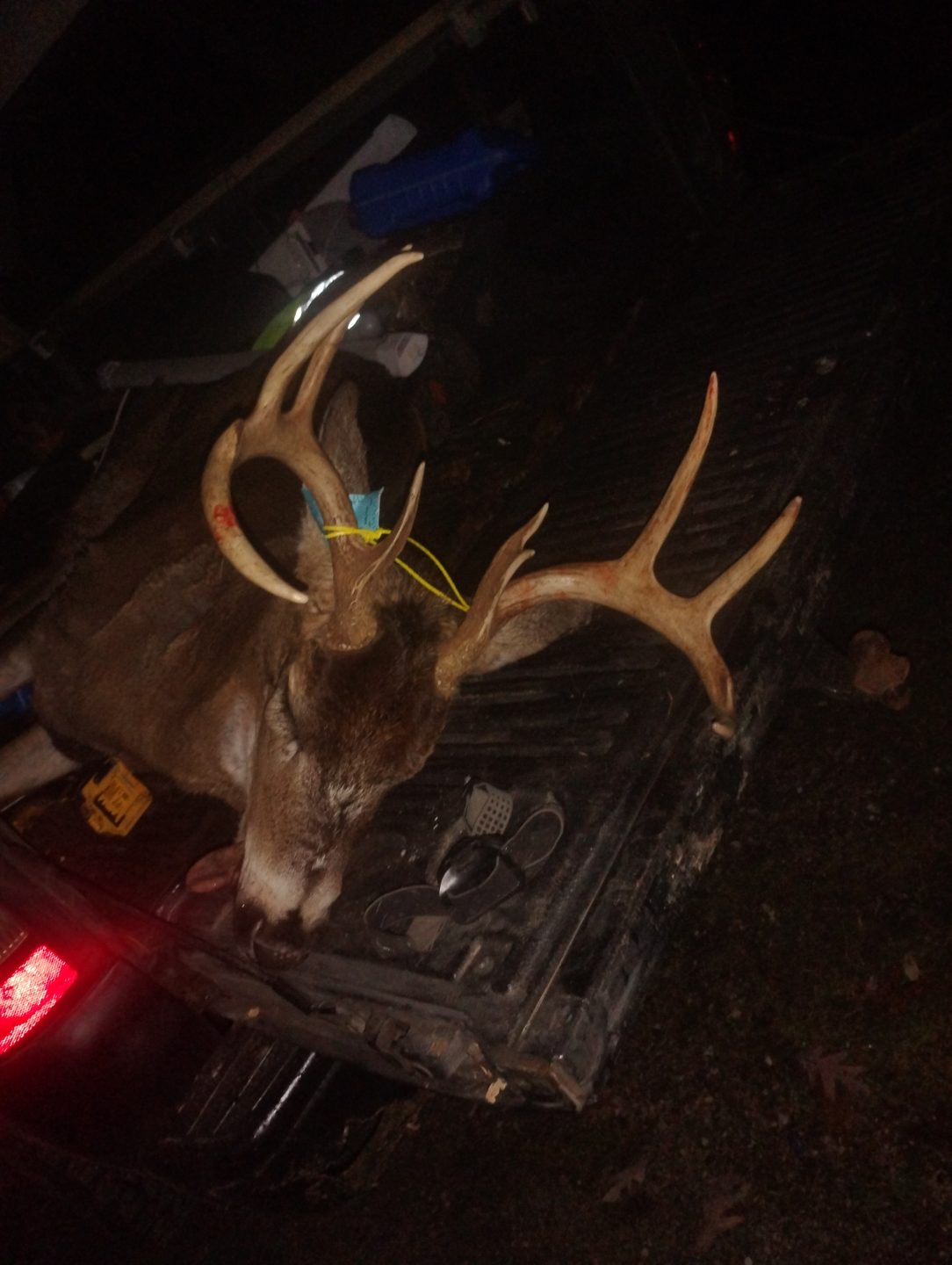 I snuck down on the swamp at my late daughter’s house and was grunting rather aggressively watching a thicket Infront of me when I heard a stick break behind me so I spun around gun still leaning against the tree and this guy was on a dead run right towards me about 15ft away,both of us started he spun around to high tail it outta there and I grabbed my browning A5 sweet sixteen and dropped him about 15 yards away!! Exciting and lil nerve racking to say the least because he had bad intentions in his eyes when our eyeballs locked on one another! Cool experience!!!