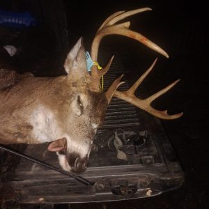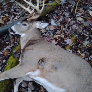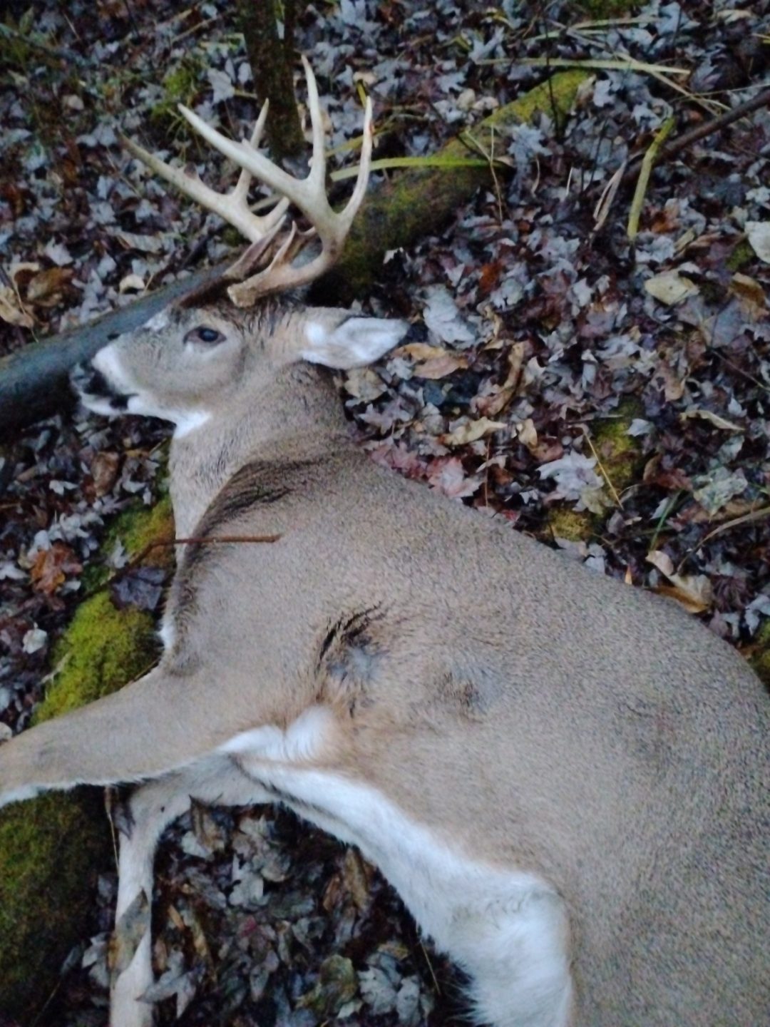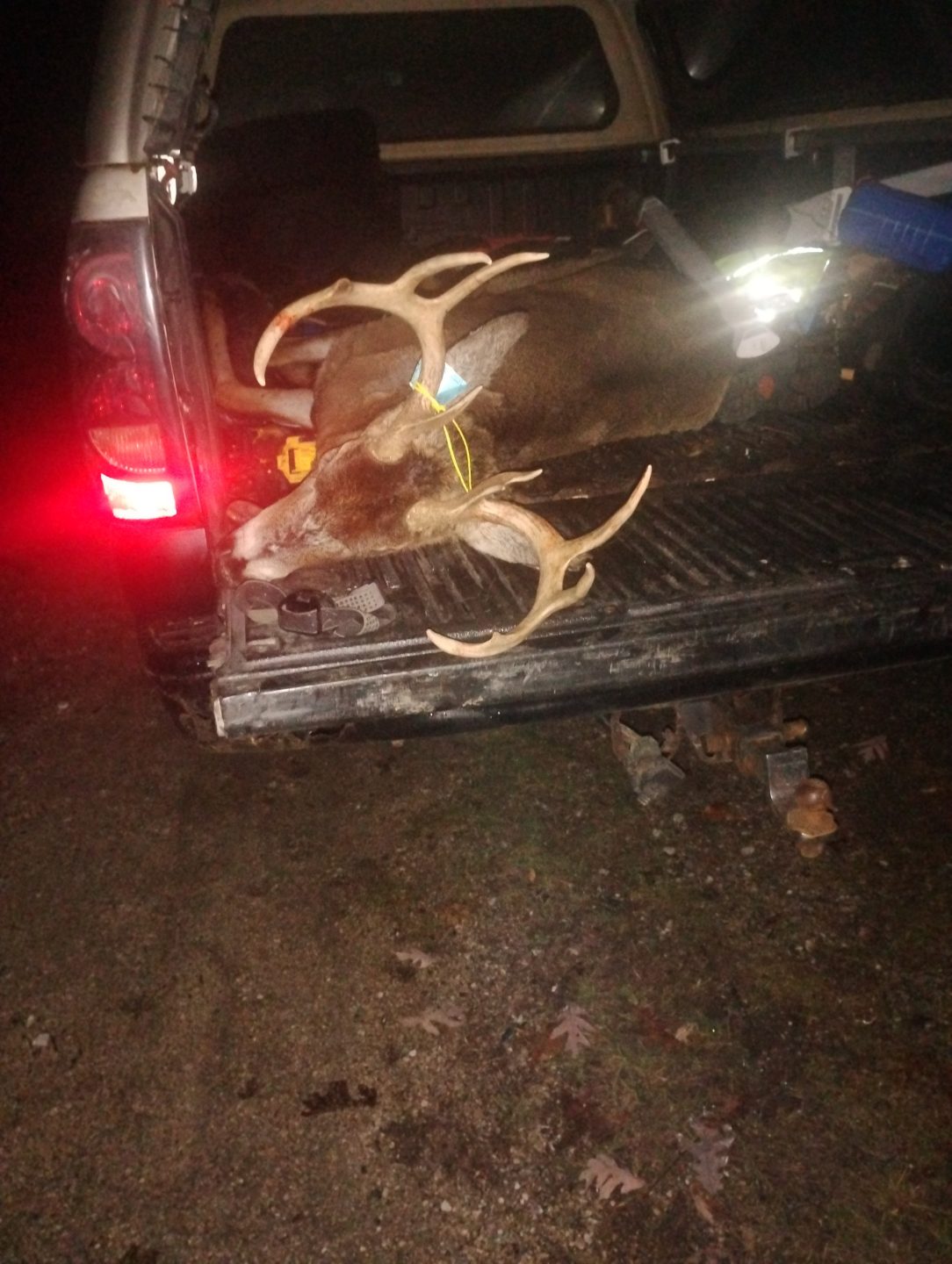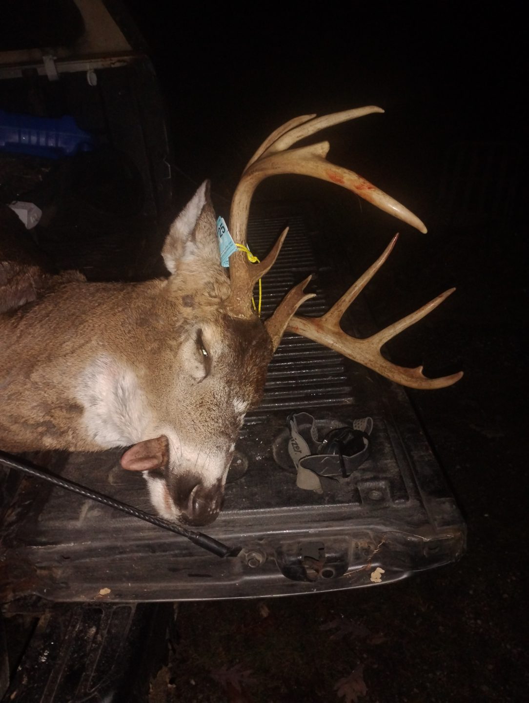 I snuck down on the swamp at my late daughter’s house and was grunting rather aggressively watching a thicket Infront of me when I heard a stick break behind me so I spun around gun still leaning against the tree and this guy was on a dead run right towards me about 15ft away,both of us started he spun around to high tail it outta there and I grabbed my browning A5 sweet sixteen and dropped him about 15 yards away!! Exciting and lil nerve racking to say the least because he had bad intentions in his eyes when our eyeballs locked on one another! Cool experience!!!