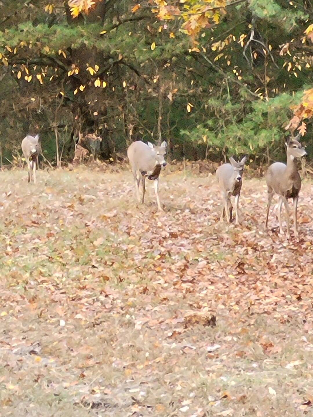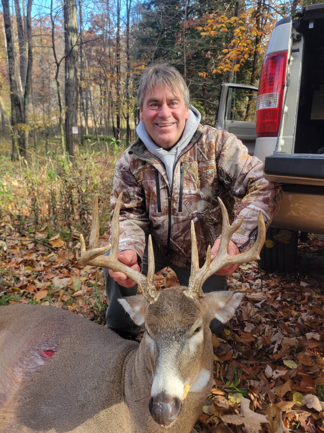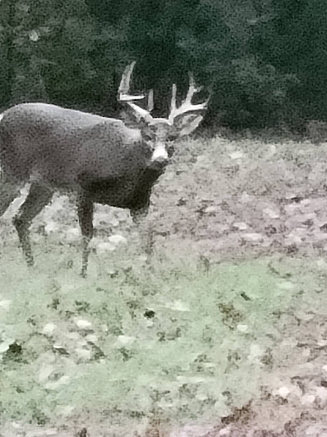 Went out around 4 pm. Several does and a couple of spikes came through. Couldn’t believe my eyes when the big buck showed up. I took a photo with my phone before taking the shot with my crossbow. I waited an hour before tracking. Couldn’t find him last night. Went back out this morning to track, and crows gave his location away! Biggest deer I’ve harvested to date, 57 years young! – Jon
