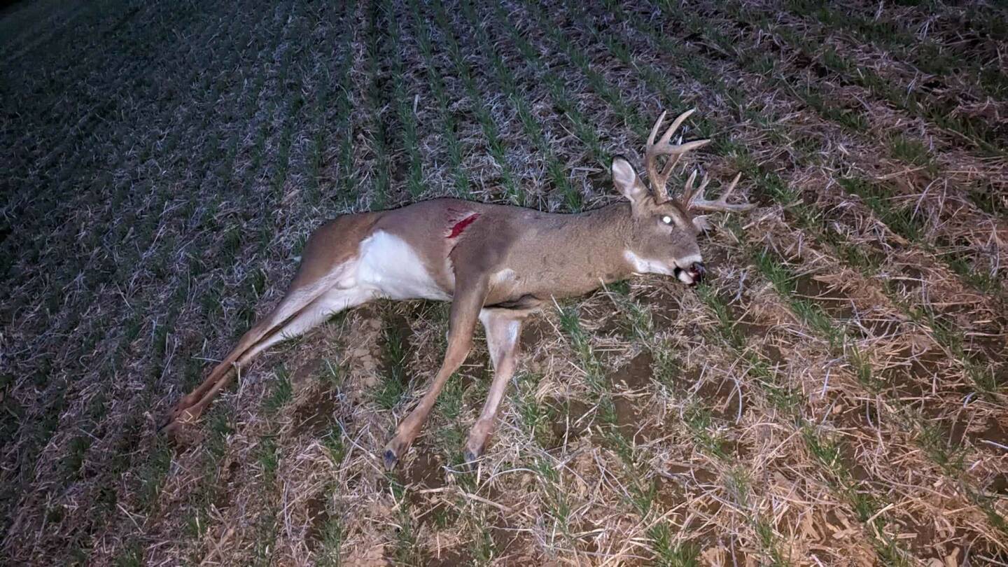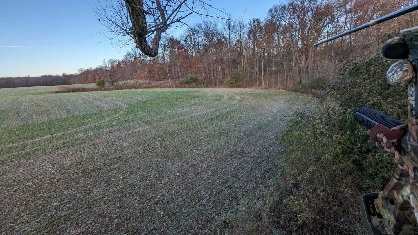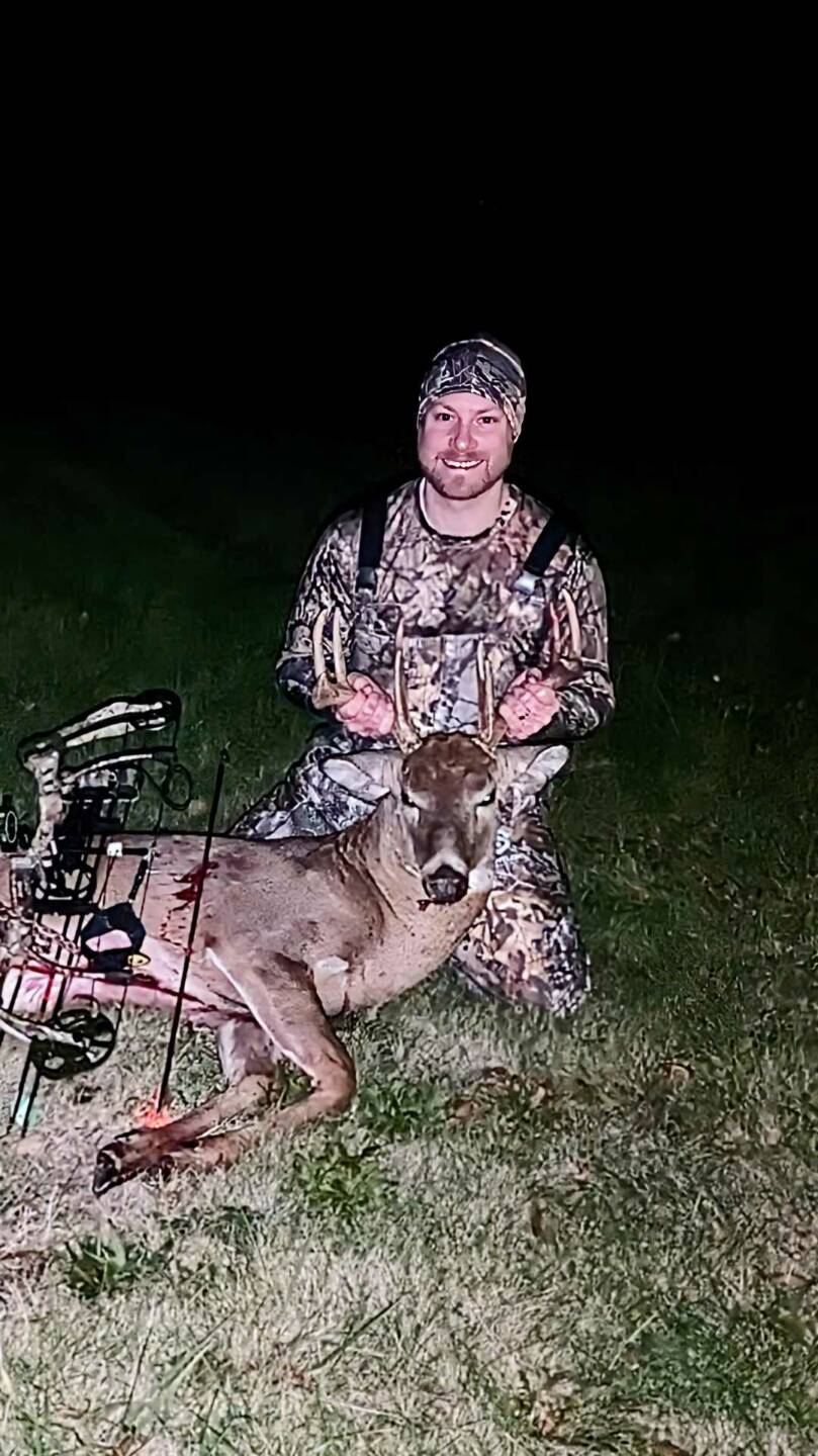 What a deer! This was one of those days where I almost didn’t go out, but luckily, I did. It was an absolutely beautiful evening. At around 5:20 p.m., this buck stepped out onto the corner of the field a little over 40 yards away. I knew he was a shooter from the mass of the rack. He started walking North adding a little bit of distance between us and then stopped. So I drew back from the sitting position and put the 50 yard pin behind his shoulder and let it fly! SMACK! He went running for about 60 yards and stopped before crashing to the ground. Such an amazing moment!