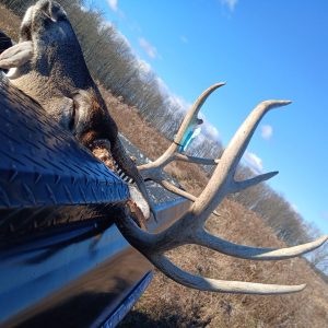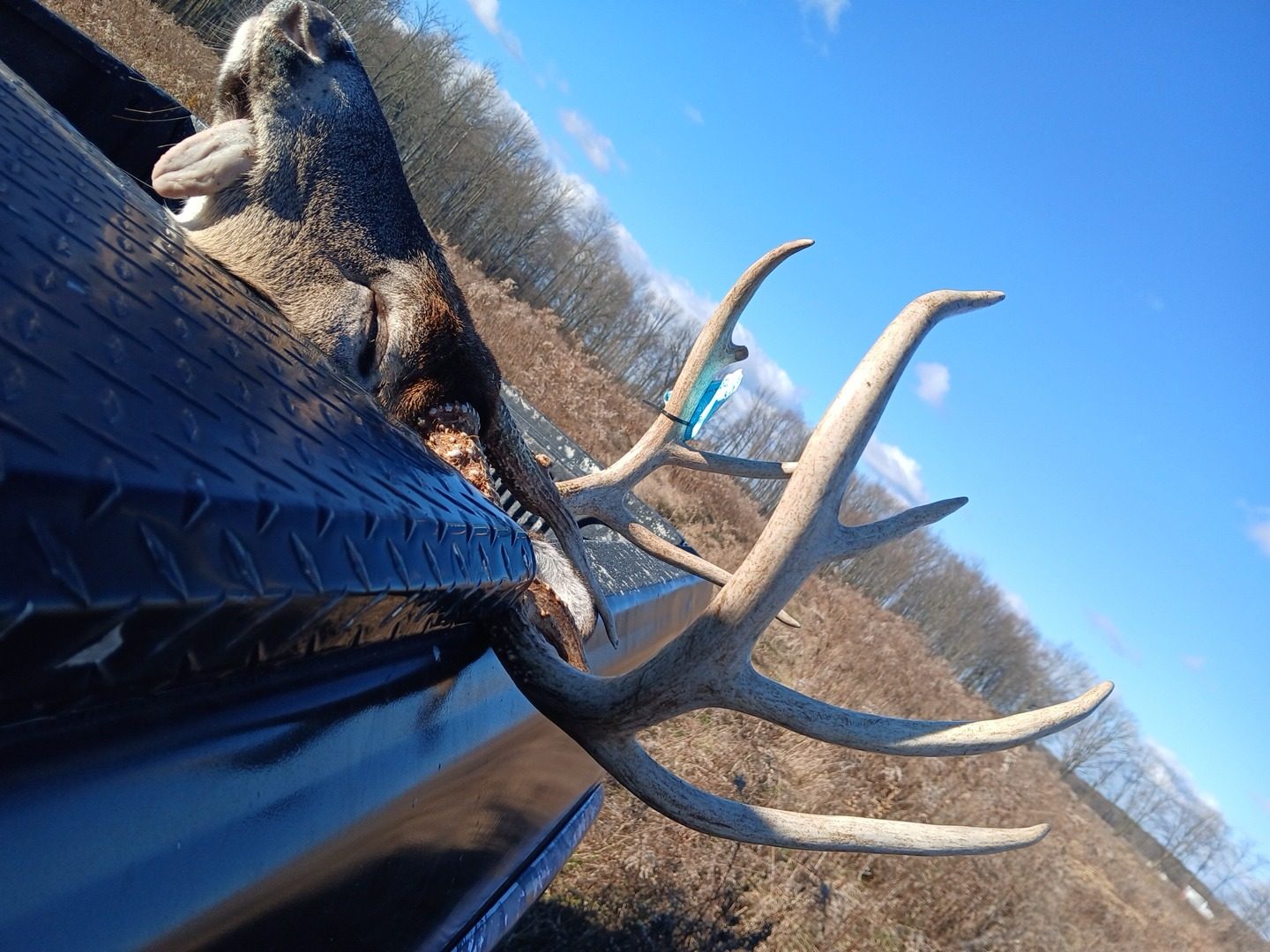 morning hunted a stand i dont hunt during bow season and this toad came from down wind of me at 715 have him on camera 2 times seen him once in the daylight but lull and behold he comes from my right nose down hot horns up caught him before he caught me ranged him at 80yrds and let the 450 bark!!! Even with his pumperstation ripped in half he still ran 70 yards walked passed him 4 times..thought he made it to the 2 track. Went back tracked blood through the tall grass be was dead 10 yards from the 2 track!!! All of this excitement before the suns even up!!! Amazing time want to thank my Nephew and Dad for always being here for these memories!!!