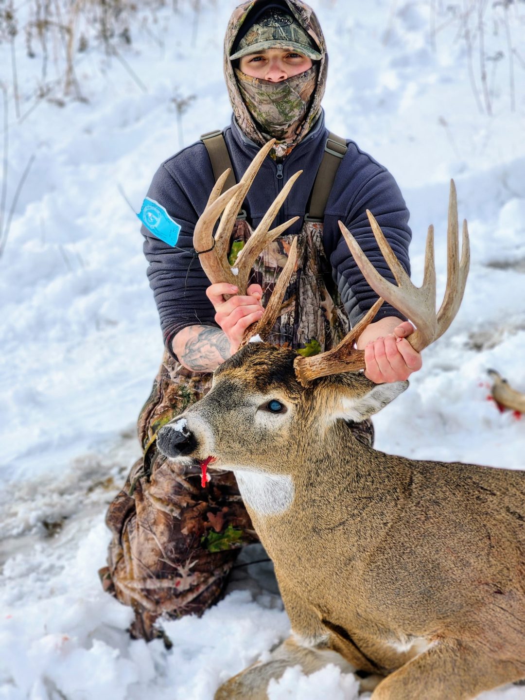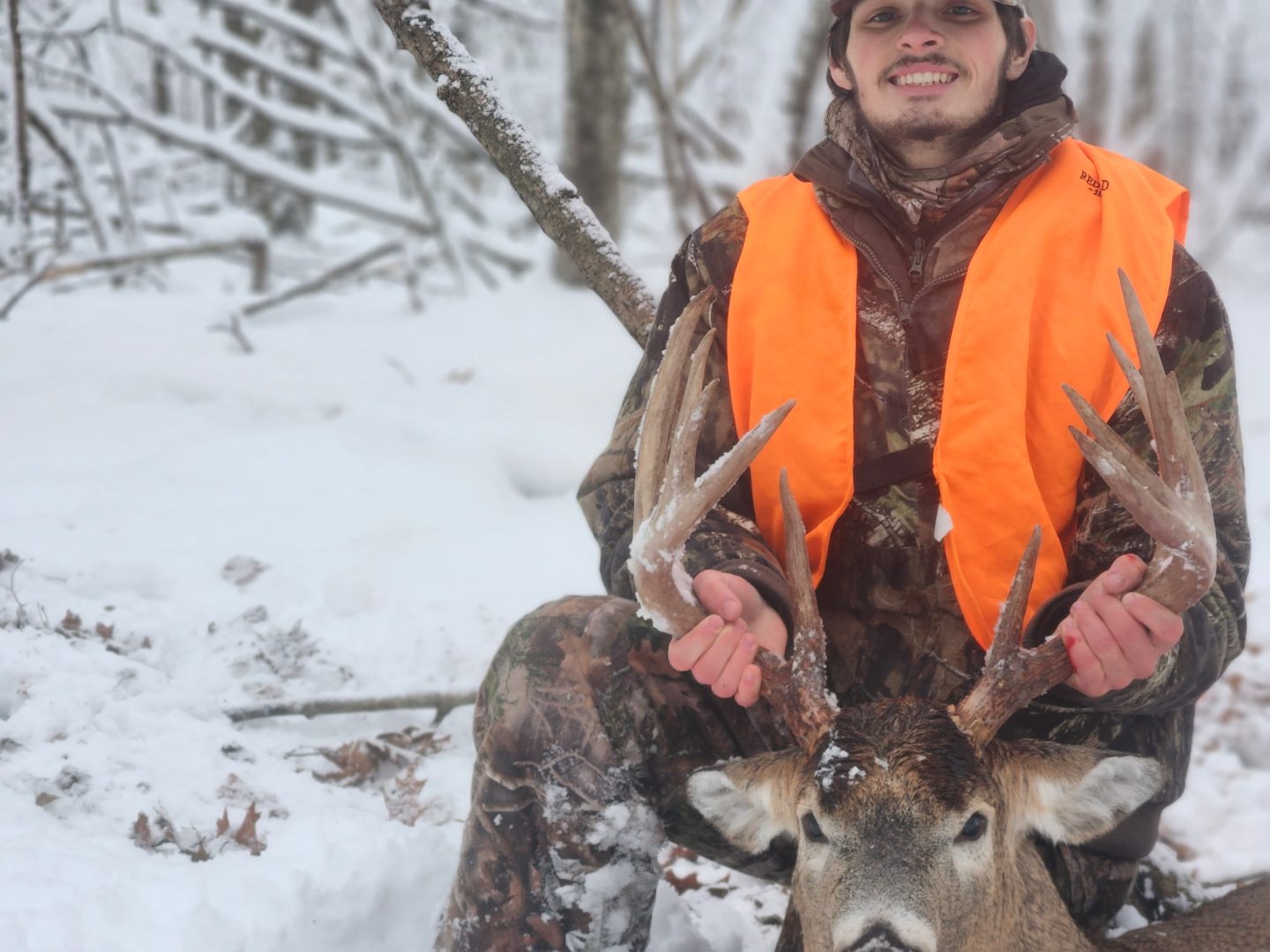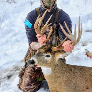 He came walking out of the thicket right at shooting light headed for the bedding ground. I slowly got the gun up without him noticing and when I went to make the shot my bullet didn’t fire. He was staring at me so I had to slowly rack another bullet and fortunately he gave me just enough time to make a 30 yd shot and he didn’t make it 50 yards before piling up. My biggest buck to date and very blessed to say the least.