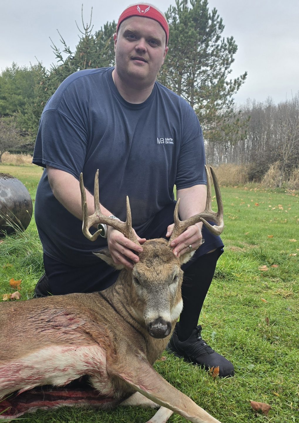 Waiting for opening day is like Christmas eve for me. I got little to no sleep last night being so excited to get out. I have been out numerous times in archery season with no luck. I have a few pictures of this buck from a few hundred yards out. Haven’t seen him in over a week and today he came in on a line chasing a group of doe. I was thankful to get the chance at seeing a pieballed fawn as well in the group. It happened so fast but I was able to get a perfect walking shot off and he ran about 30 yards, hit a tree and the rest is history