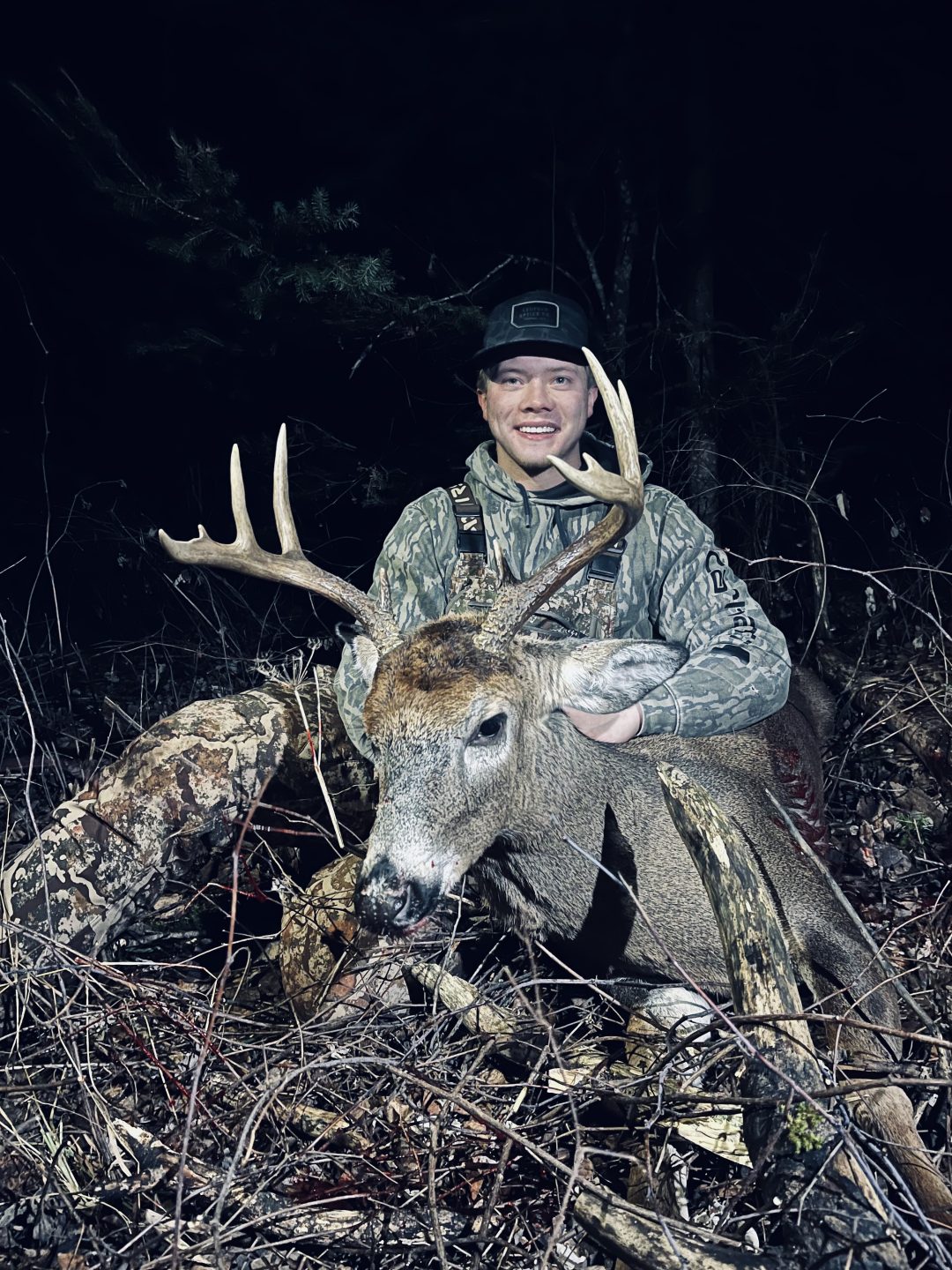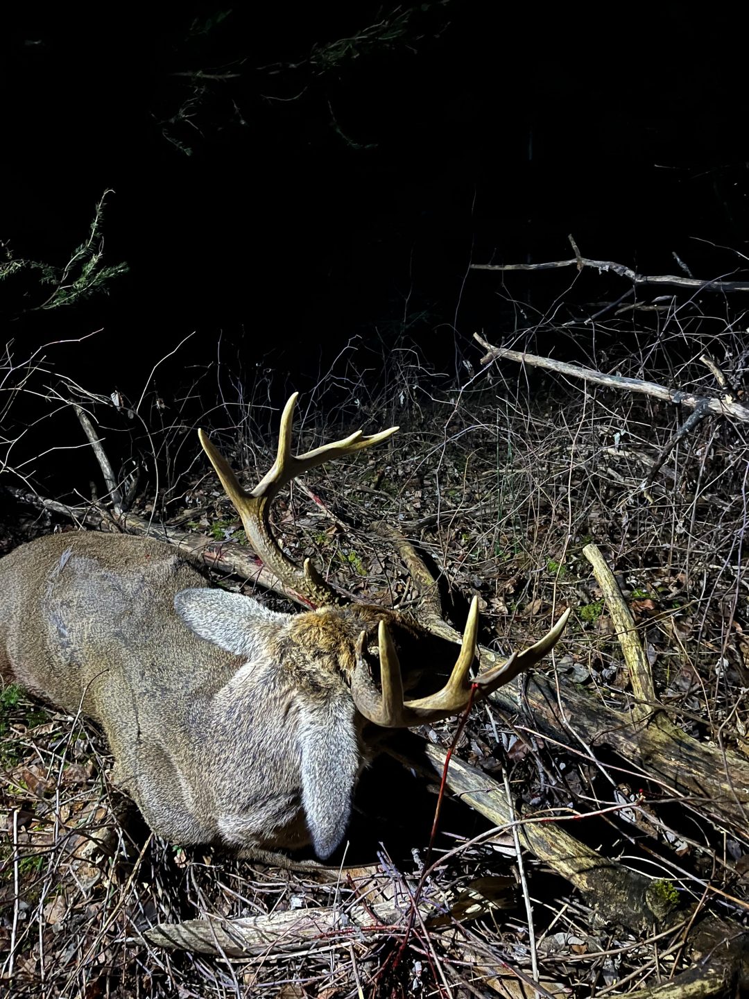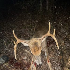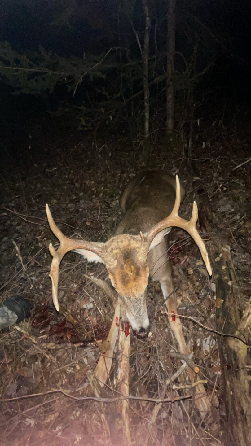 Showed up the night before the shot after a long bow season trying to target a buck from last year. Came in hot on a doe took the shot and the rest is history. Very thankful!