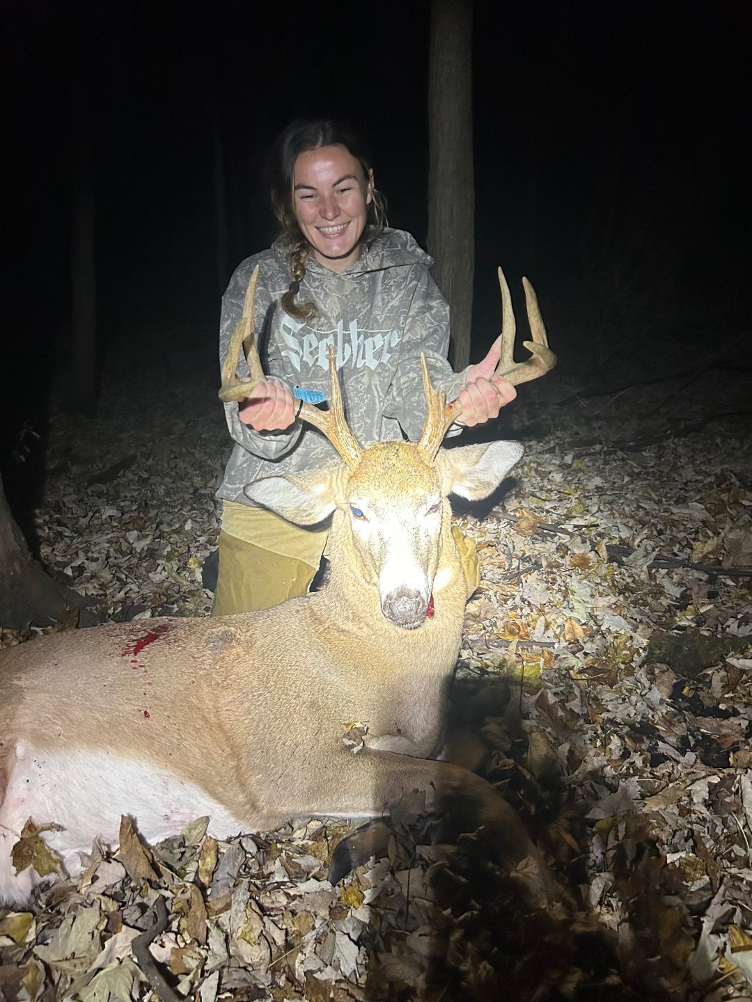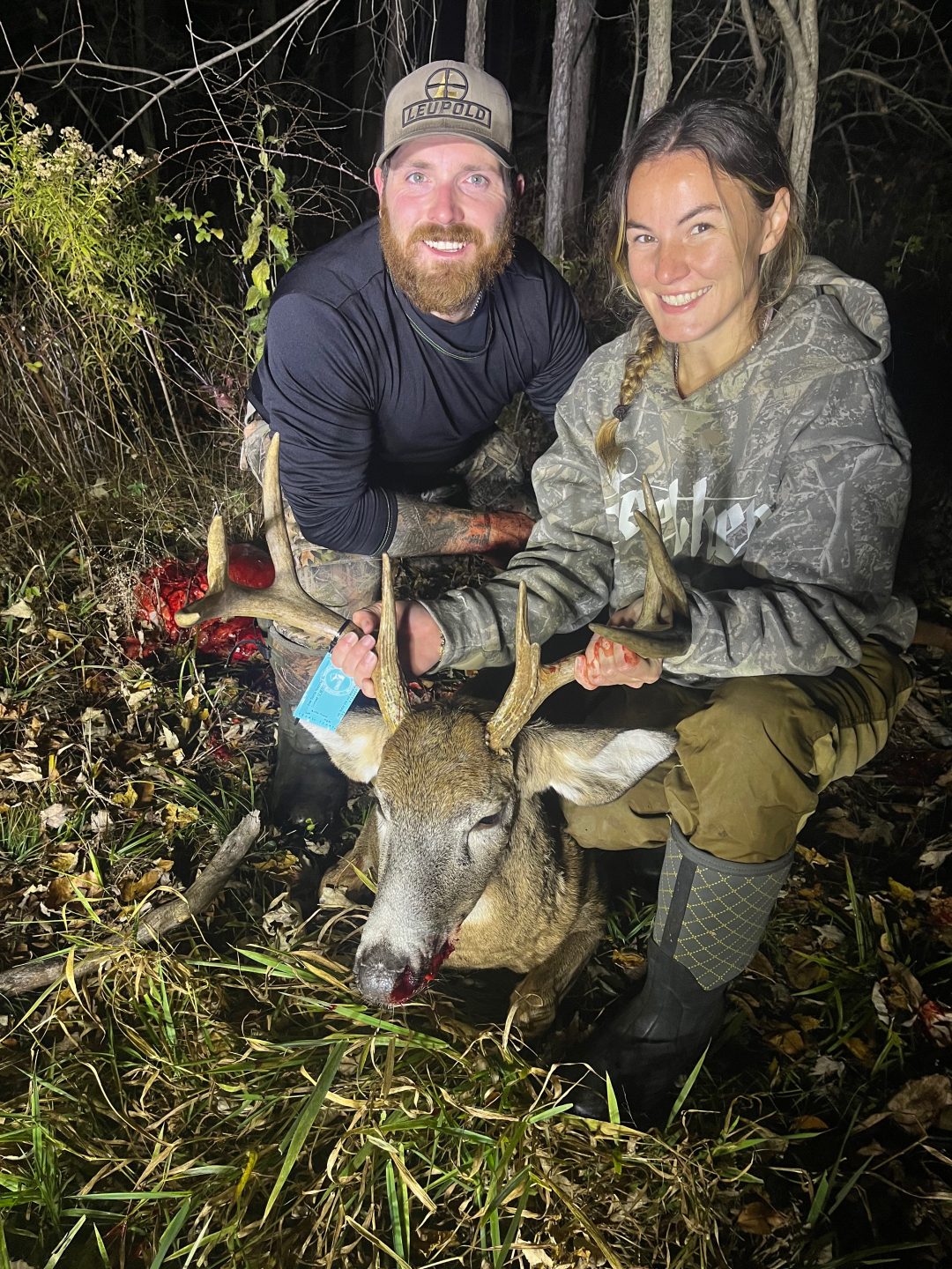 Sat in my blind at 2:30 my fiance was sitting just south of me on the other end of the field. My dad was on his way to the property. Had a 4 point and a button buck behind me in the woods all night. Around 5 a doe and her littles got kicked into the field in front of me by this guy. Reluctant to come in the field, he made his way behind me in the woods, in his head “the safe way”. The button buck who was now 10 yards from my ladder gave him the confidence to step into my window. Broad side at 16 yards, double lung, ran 70 yards before expiring right behind the cabin. A perfect start to a long weekend of being in the woods!! After 4 years with no harvest & tracking and dragging both my fiance and dads 8 points this year, this one felt well deserved!