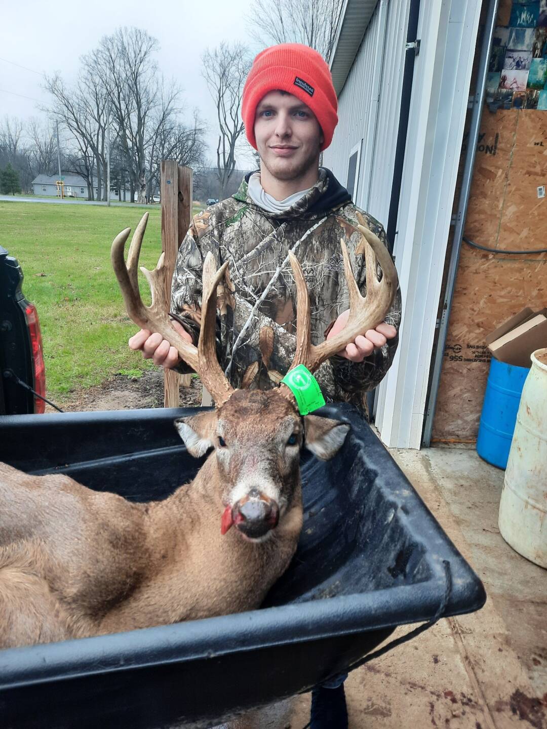 My Dad and I Hunted until 9:30 and we closed up the blind to head back up and saw this guy trotting towards us and he saw us and ran and stopped about 100yd away and I shot and he dropped with a 243. Biggest buck to date